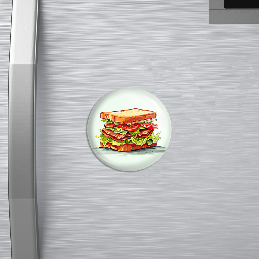 مگنت فست فود (Fast Food) خندالو با روکش سلفون مات مخملی ضدخش و قطعه پشتی فلزی تولید شده است که آهنربای اتمی بکار برده شده در محصول، بصورت مخفی تعبیه شده ودیده نمی شود. ضمن اینکه گیرایی بسیار بالایی داشته و به هیچ عنوان از روی یخچال نمی افتد.