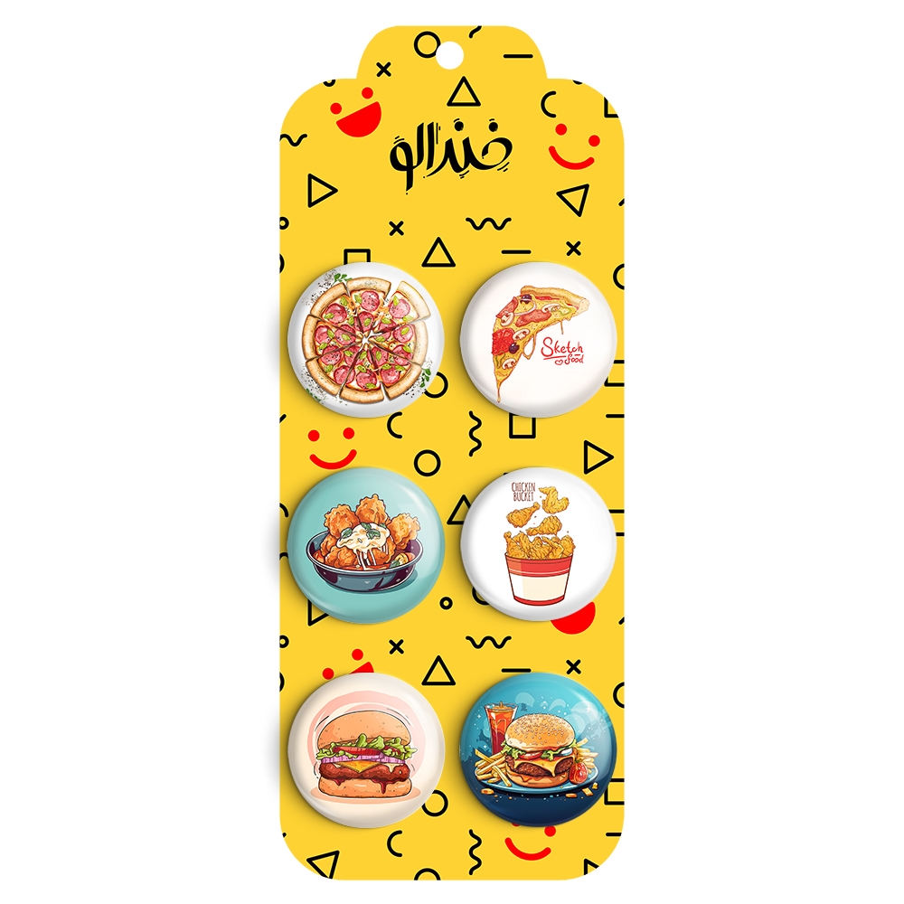 پک 6 عددی مگنت یخچال خندالو طرح فست فود (Fast Food) با روکش سلفون مات حرارتی مخملی ضدخش و قطعه پشتی فلزی تولید شده است که آهنربای اتمی بکار برده شده در محصول، بصورت مخفی تعبیه شده ودیده نمی شود. ضمن اینکه گیرایی بسیار بالایی داشته و به هیچ عنوان از روی یخچال نمی افتد. نکته مهم این است که به دلیل مخفی بودن آهنربا، هیچگونه خط و خش و زدگی بر روی یخچال ایجاد نخواهد شد. چاپ مگنت یخچال نیز با دستگاه های استاندارد و با بهترین سطح کیفیت صورت گرفته و طرح با شفافیتی مثال زدنی و با سلفون چسبی تولید شده است که باعث شده محصول نهایی بدون شکست نور دیده شود. همچنین بسته بندی جذاب و مینیمال مگنت های یخچالی، آنها را مناسب هدیه کرده است. مگنت خندالو علاوه بر روی یخچال بر هر سطح فلزی دیگری مثل لولای در اتاق، کمد های آهنی و … نیز قابل نصب است.