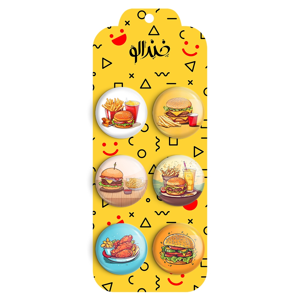 پک 6 عددی مگنت یخچال خندالو طرح فست فود (Fast Food) با روکش سلفون مات حرارتی مخملی ضدخش و قطعه پشتی فلزی تولید شده است که آهنربای اتمی بکار برده شده در محصول، بصورت مخفی تعبیه شده ودیده نمی شود. ضمن اینکه گیرایی بسیار بالایی داشته و به هیچ عنوان از روی یخچال نمی افتد. نکته مهم این است که به دلیل مخفی بودن آهنربا، هیچگونه خط و خش و زدگی بر روی یخچال ایجاد نخواهد شد. چاپ مگنت یخچال نیز با دستگاه های استاندارد و با بهترین سطح کیفیت صورت گرفته و طرح با شفافیتی مثال زدنی و با سلفون چسبی تولید شده است که باعث شده محصول نهایی بدون شکست نور دیده شود. همچنین بسته بندی جذاب و مینیمال مگنت های یخچالی، آنها را مناسب هدیه کرده است. مگنت خندالو علاوه بر روی یخچال بر هر سطح فلزی دیگری مثل لولای در اتاق، کمد های آهنی و … نیز قابل نصب است.