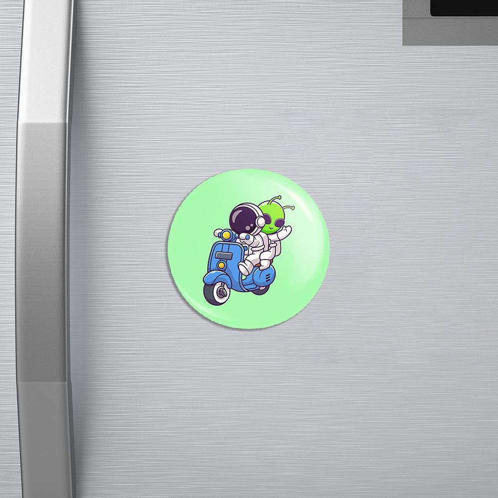 مگنت فضانورد خندالو با روکش سلفون مات مخملی ضدخش و قطعه پشتی فلزی تولید شده است که آهنربای اتمی بکار برده شده در محصول، بصورت مخفی تعبیه شده ودیده نمی شود. ضمن اینکه گیرایی بسیار بالایی داشته و به هیچ عنوان از روی یخچال نمی افتد.