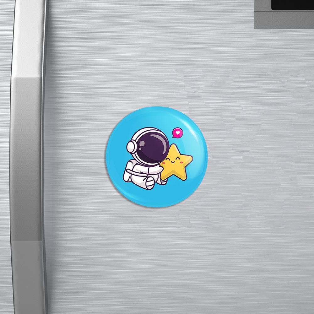 مگنت فضانورد خندالو با روکش سلفون مات مخملی ضدخش و قطعه پشتی فلزی تولید شده است که آهنربای اتمی بکار برده شده در محصول، بصورت مخفی تعبیه شده ودیده نمی شود. ضمن اینکه گیرایی بسیار بالایی داشته و به هیچ عنوان از روی یخچال نمی افتد.