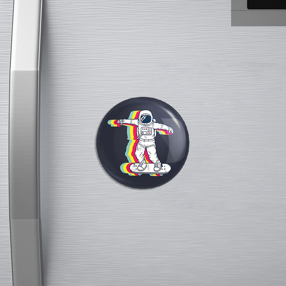 مگنت فضانورد خندالو با روکش سلفون مات مخملی ضدخش و قطعه پشتی فلزی تولید شده است که آهنربای اتمی بکار برده شده در محصول، بصورت مخفی تعبیه شده ودیده نمی شود. ضمن اینکه گیرایی بسیار بالایی داشته و به هیچ عنوان از روی یخچال نمی افتد.