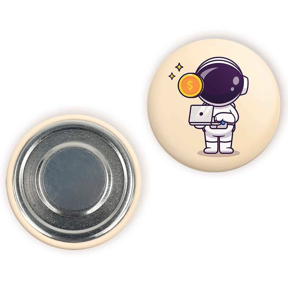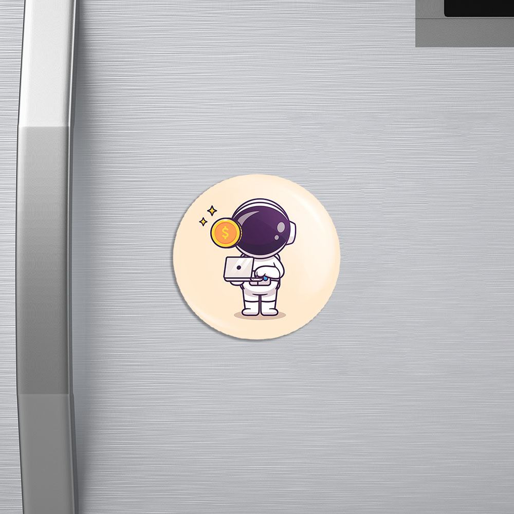 مگنت فضانورد خندالو با روکش سلفون مات مخملی ضدخش و قطعه پشتی فلزی تولید شده است که آهنربای اتمی بکار برده شده در محصول، بصورت مخفی تعبیه شده ودیده نمی شود. ضمن اینکه گیرایی بسیار بالایی داشته و به هیچ عنوان از روی یخچال نمی افتد.