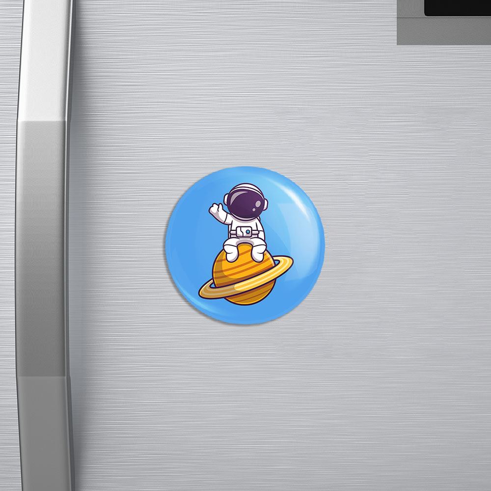 مگنت فضانورد خندالو با روکش سلفون مات مخملی ضدخش و قطعه پشتی فلزی تولید شده است که آهنربای اتمی بکار برده شده در محصول، بصورت مخفی تعبیه شده ودیده نمی شود. ضمن اینکه گیرایی بسیار بالایی داشته و به هیچ عنوان از روی یخچال نمی افتد.