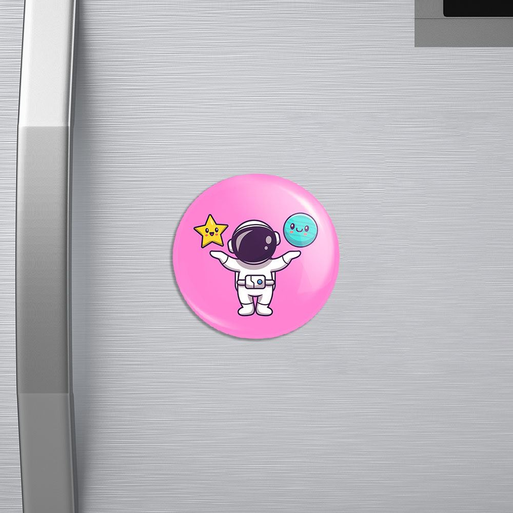 مگنت فضانورد خندالو با روکش سلفون مات مخملی ضدخش و قطعه پشتی فلزی تولید شده است که آهنربای اتمی بکار برده شده در محصول، بصورت مخفی تعبیه شده ودیده نمی شود. ضمن اینکه گیرایی بسیار بالایی داشته و به هیچ عنوان از روی یخچال نمی افتد.