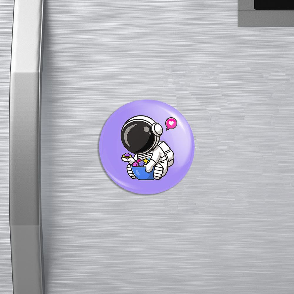 مگنت فضانورد خندالو با روکش سلفون مات مخملی ضدخش و قطعه پشتی فلزی تولید شده است که آهنربای اتمی بکار برده شده در محصول، بصورت مخفی تعبیه شده ودیده نمی شود. ضمن اینکه گیرایی بسیار بالایی داشته و به هیچ عنوان از روی یخچال نمی افتد.
