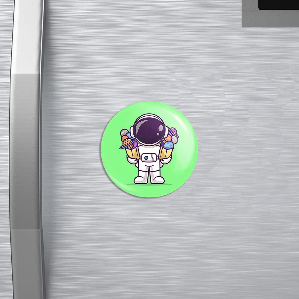 مگنت فضانورد خندالو با روکش سلفون مات مخملی ضدخش و قطعه پشتی فلزی تولید شده است که آهنربای اتمی بکار برده شده در محصول، بصورت مخفی تعبیه شده ودیده نمی شود. ضمن اینکه گیرایی بسیار بالایی داشته و به هیچ عنوان از روی یخچال نمی افتد.