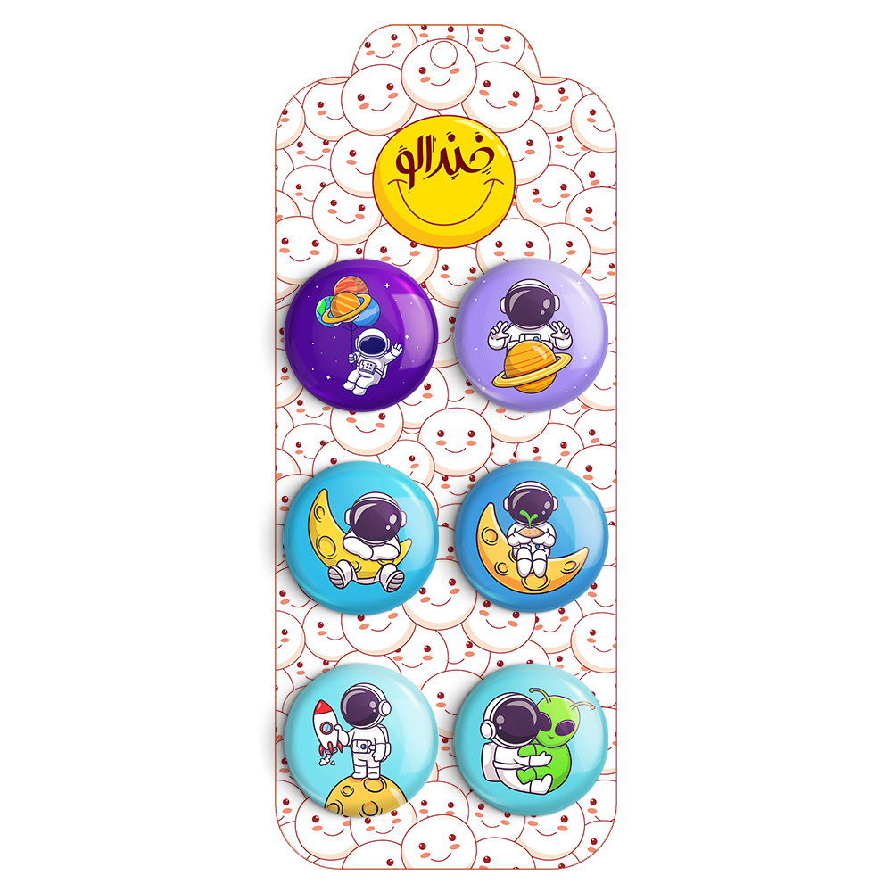 پک 6 عددی مگنت یخچال خندالو طرح فضانورد با روکش سلفون مات حرارتی مخملی ضدخش و قطعه پشتی فلزی تولید شده است که آهنربای اتمی بکار برده شده در محصول، بصورت مخفی تعبیه شده ودیده نمی شود. ضمن اینکه گیرایی بسیار بالایی داشته و به هیچ عنوان از روی یخچال نمی افتد. نکته مهم این است که به دلیل مخفی بودن آهنربا، هیچگونه خط و خش و زدگی بر روی یخچال ایجاد نخواهد شد.
