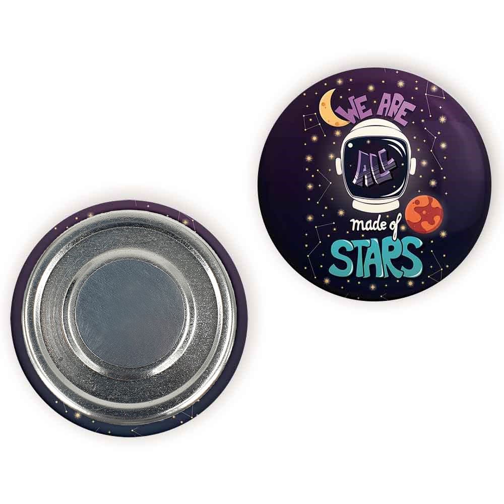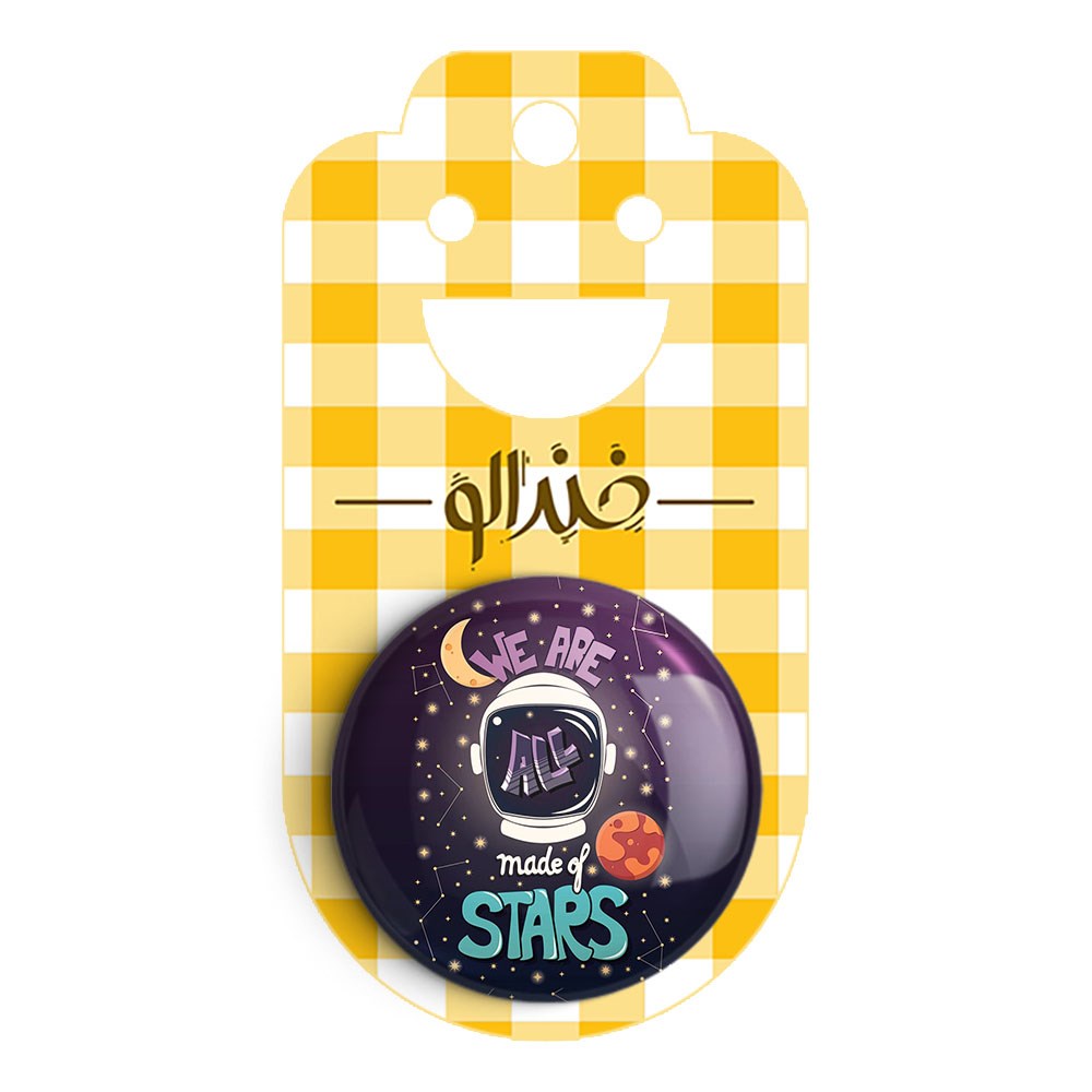 مگنت فضایی خندالو با روکش سلفون مات مخملی ضدخش و قطعه پشتی فلزی تولید شده است که آهنربای اتمی بکار برده شده در محصول، بصورت مخفی تعبیه شده ودیده نمی شود. ضمن اینکه گیرایی بسیار بالایی داشته و به هیچ عنوان از روی یخچال نمی افتد.