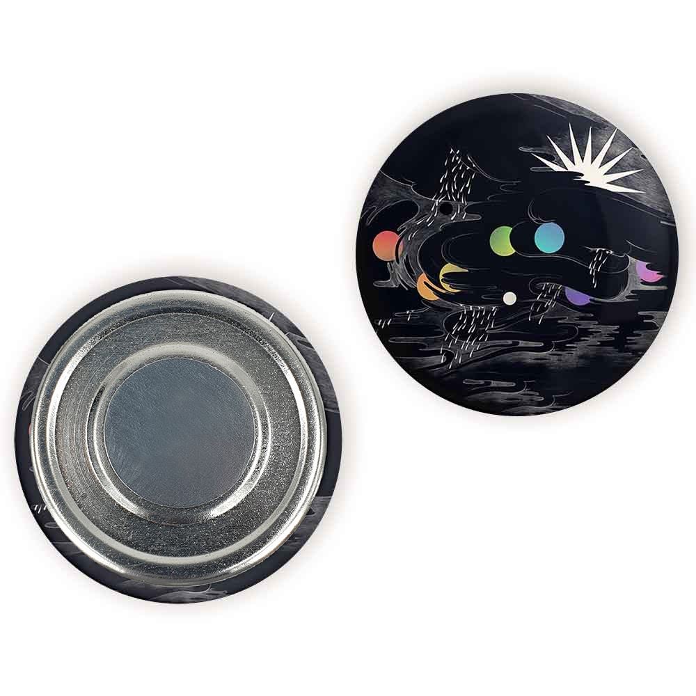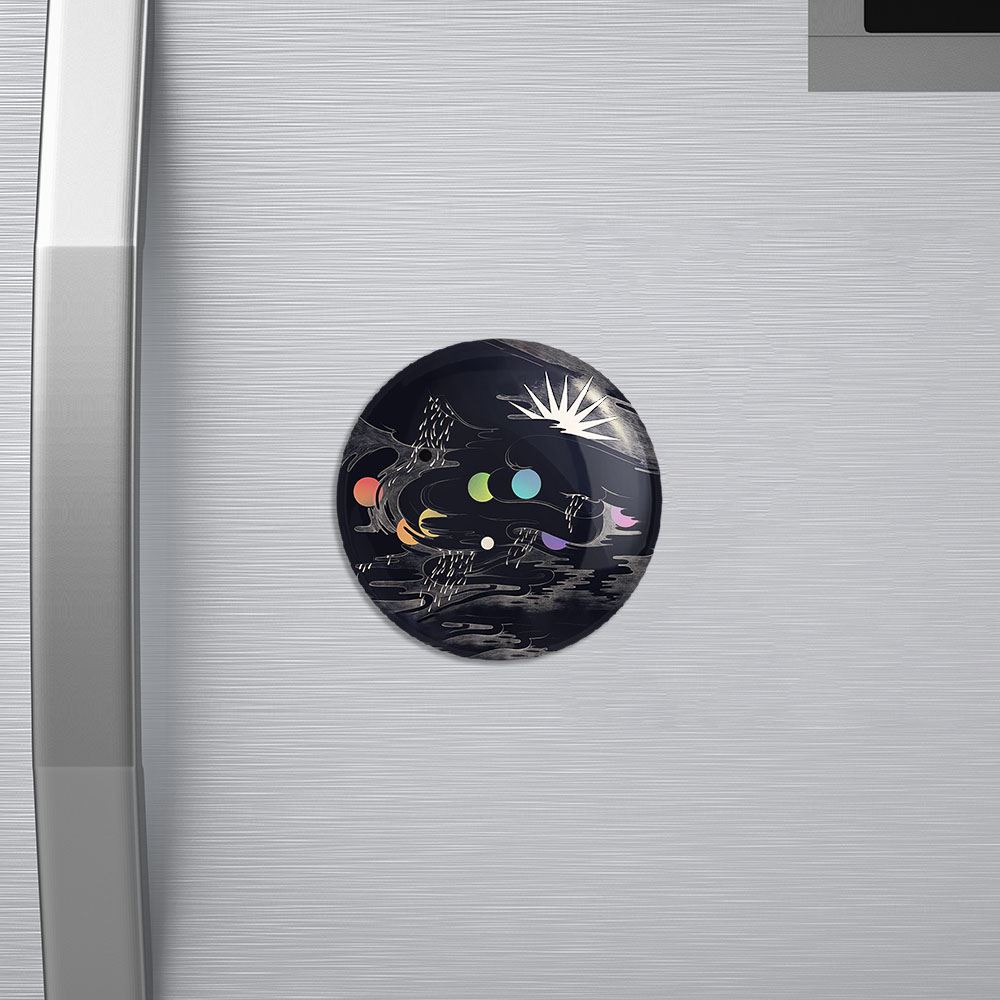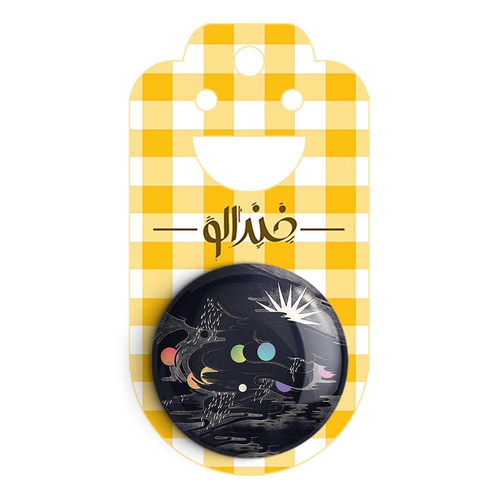 مگنت فضایی خندالو با روکش سلفون مات مخملی ضدخش و قطعه پشتی فلزی تولید شده است که آهنربای اتمی بکار برده شده در محصول، بصورت مخفی تعبیه شده ودیده نمی شود. ضمن اینکه گیرایی بسیار بالایی داشته و به هیچ عنوان از روی یخچال نمی افتد.