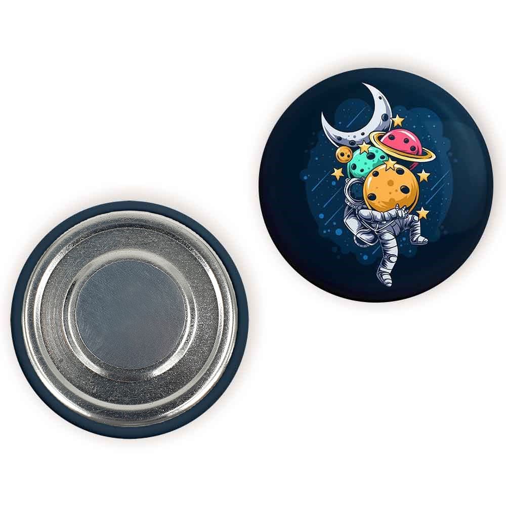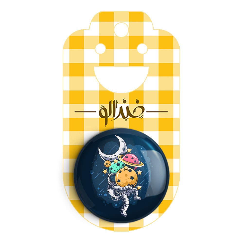 مگنت فضایی خندالو با روکش سلفون مات مخملی ضدخش و قطعه پشتی فلزی تولید شده است که آهنربای اتمی بکار برده شده در محصول، بصورت مخفی تعبیه شده ودیده نمی شود. ضمن اینکه گیرایی بسیار بالایی داشته و به هیچ عنوان از روی یخچال نمی افتد.