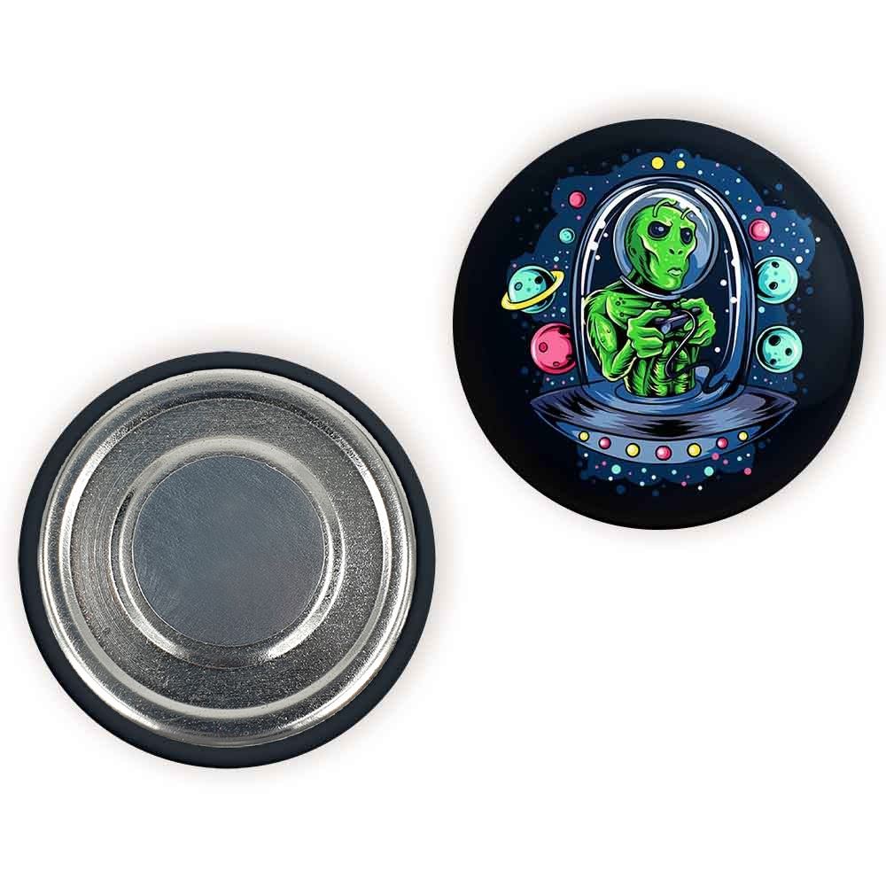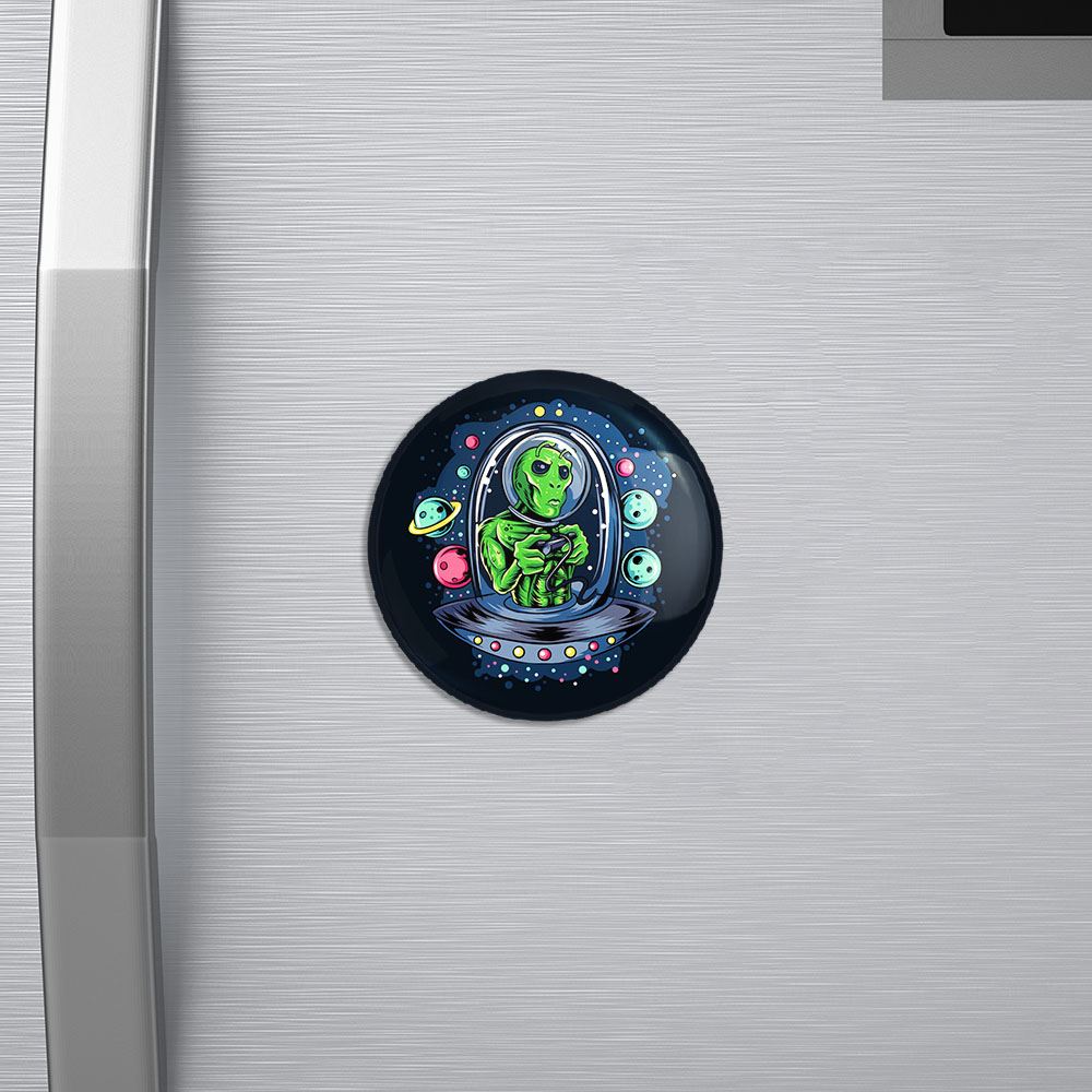 مگنت فضایی خندالو با روکش سلفون مات مخملی ضدخش و قطعه پشتی فلزی تولید شده است که آهنربای اتمی بکار برده شده در محصول، بصورت مخفی تعبیه شده ودیده نمی شود. ضمن اینکه گیرایی بسیار بالایی داشته و به هیچ عنوان از روی یخچال نمی افتد.