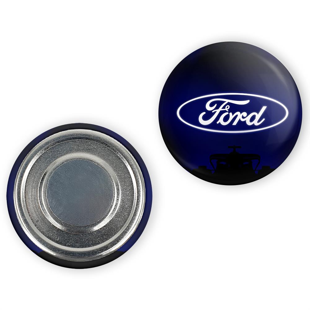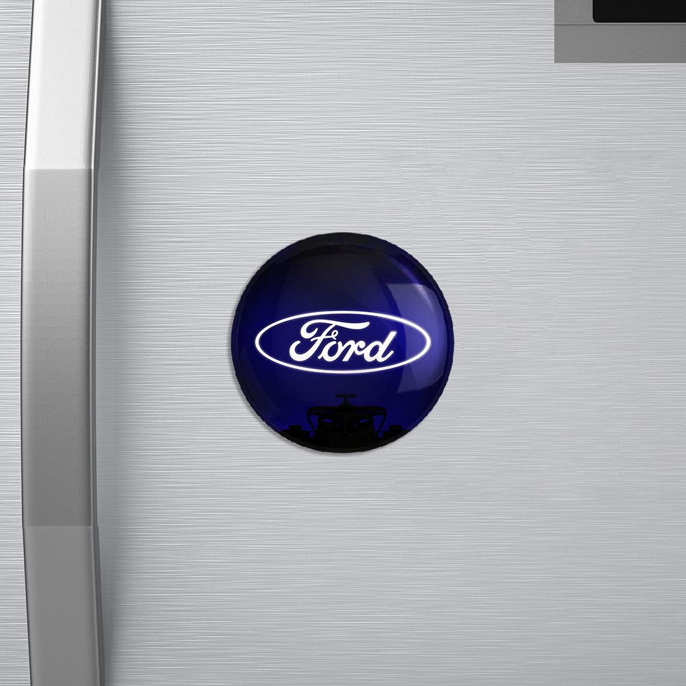 مگنت فورد Ford خندالو با روکش سلفون مات مخملی ضدخش و قطعه پشتی فلزی تولید شده است که آهنربای اتمی بکار برده شده در محصول، بصورت مخفی تعبیه شده ودیده نمی شود. ضمن اینکه گیرایی بسیار بالایی داشته و به هیچ عنوان از روی یخچال نمی افتد.