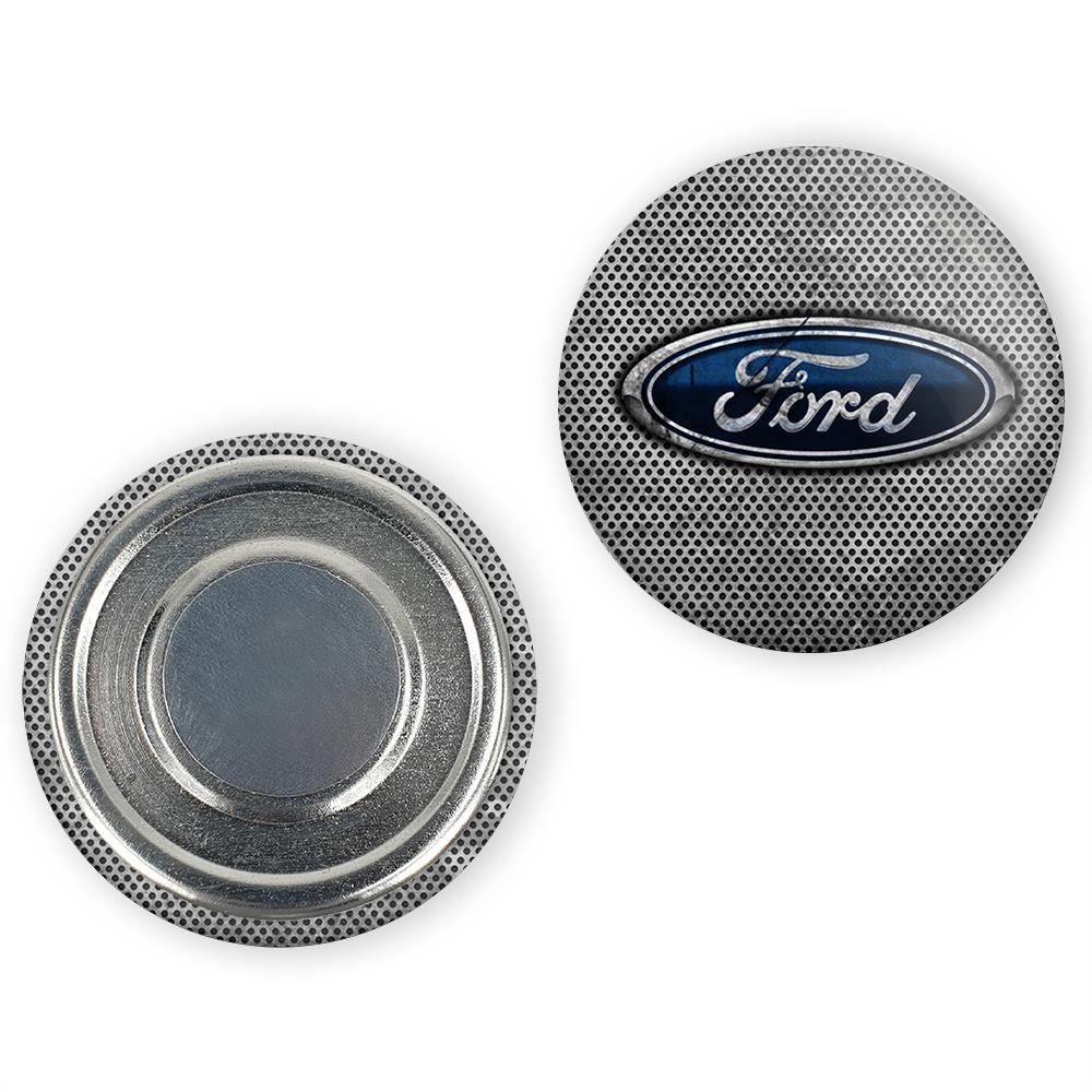 مگنت فورد Ford خندالو با روکش سلفون مات مخملی ضدخش و قطعه پشتی فلزی تولید شده است که آهنربای اتمی بکار برده شده در محصول، بصورت مخفی تعبیه شده ودیده نمی شود. ضمن اینکه گیرایی بسیار بالایی داشته و به هیچ عنوان از روی یخچال نمی افتد.
