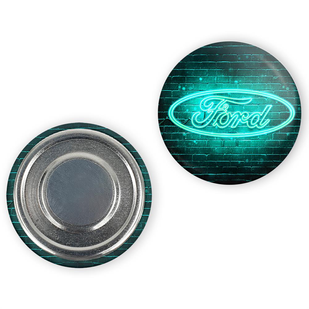 مگنت فورد Ford خندالو با روکش سلفون مات مخملی ضدخش و قطعه پشتی فلزی تولید شده است که آهنربای اتمی بکار برده شده در محصول، بصورت مخفی تعبیه شده ودیده نمی شود. ضمن اینکه گیرایی بسیار بالایی داشته و به هیچ عنوان از روی یخچال نمی افتد.
