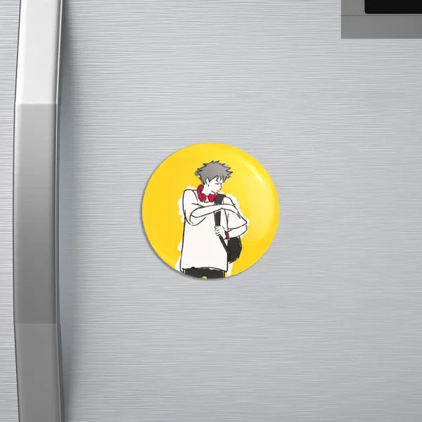 مگنت فوشیگورو مگومی انیمه جوجوتسو کایزن خندالو با روکش سلفون مات مخملی ضدخش و قطعه پشتی فلزی تولید شده است که آهنربای اتمی بکار برده شده در محصول، بصورت مخفی تعبیه شده ودیده نمی شود. ضمن اینکه گیرایی بسیار بالایی داشته و به هیچ عنوان از روی یخچال نمی افتد.