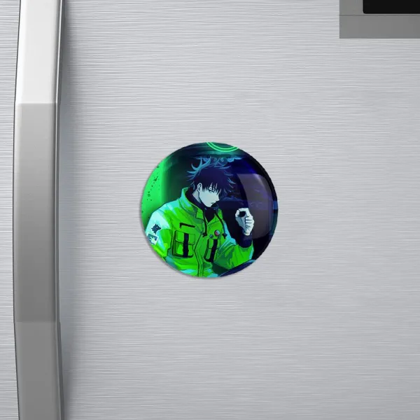 مگنت فوشیگورو مگومی انیمه جوجوتسو کایزن خندالو با روکش سلفون مات مخملی ضدخش و قطعه پشتی فلزی تولید شده است که آهنربای اتمی بکار برده شده در محصول، بصورت مخفی تعبیه شده ودیده نمی شود. ضمن اینکه گیرایی بسیار بالایی داشته و به هیچ عنوان از روی یخچال نمی افتد.