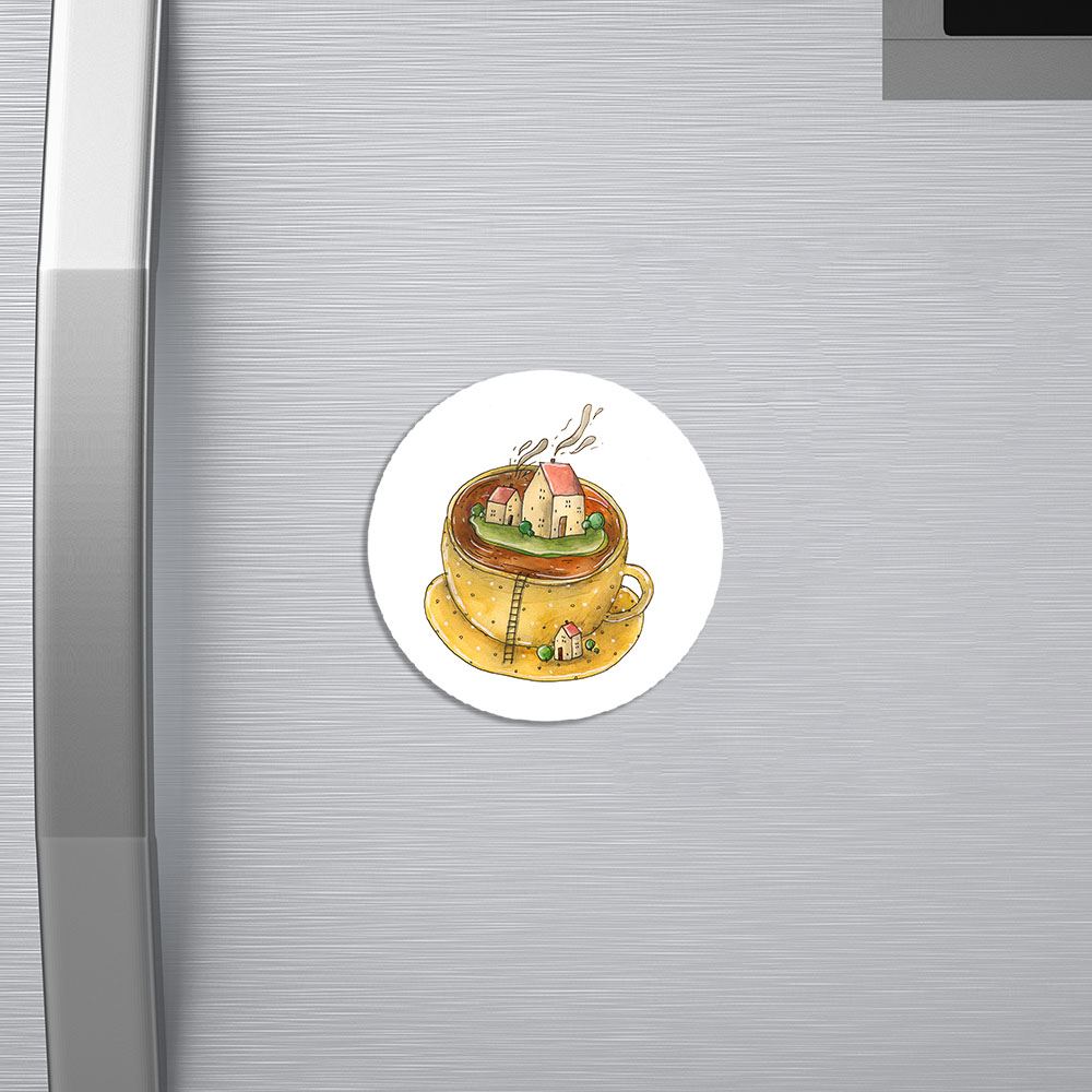 مگنت قهوه Coffee خندالو با روکش سلفون مات مخملی ضدخش و قطعه پشتی فلزی تولید شده است که آهنربای اتمی بکار برده شده در محصول، بصورت مخفی تعبیه شده ودیده نمی شود. ضمن اینکه گیرایی بسیار بالایی داشته و به هیچ عنوان از روی یخچال نمی افتد.