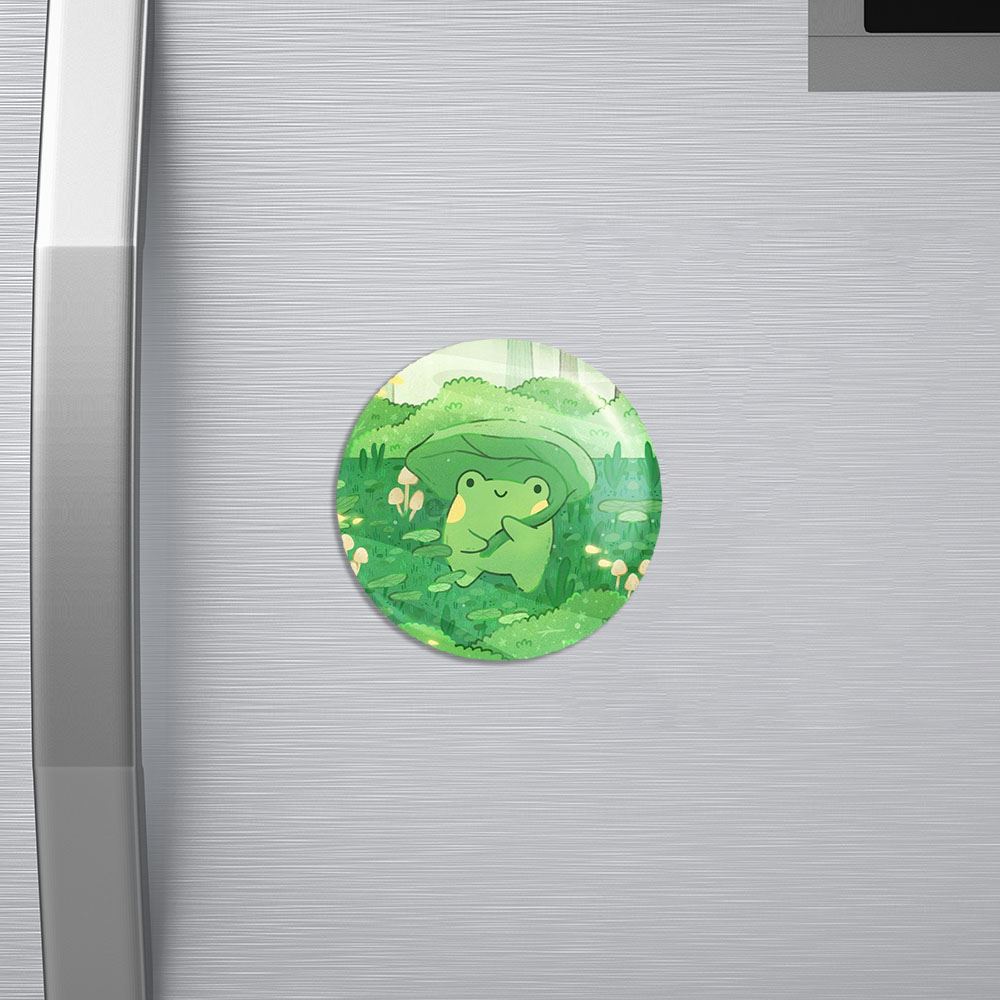 مگنت قورباغه خندالو با روکش سلفون مات مخملی ضدخش و قطعه پشتی فلزی تولید شده است که آهنربای اتمی بکار برده شده در محصول، بصورت مخفی تعبیه شده ودیده نمی شود. ضمن اینکه گیرایی بسیار بالایی داشته و به هیچ عنوان از روی یخچال نمی افتد.