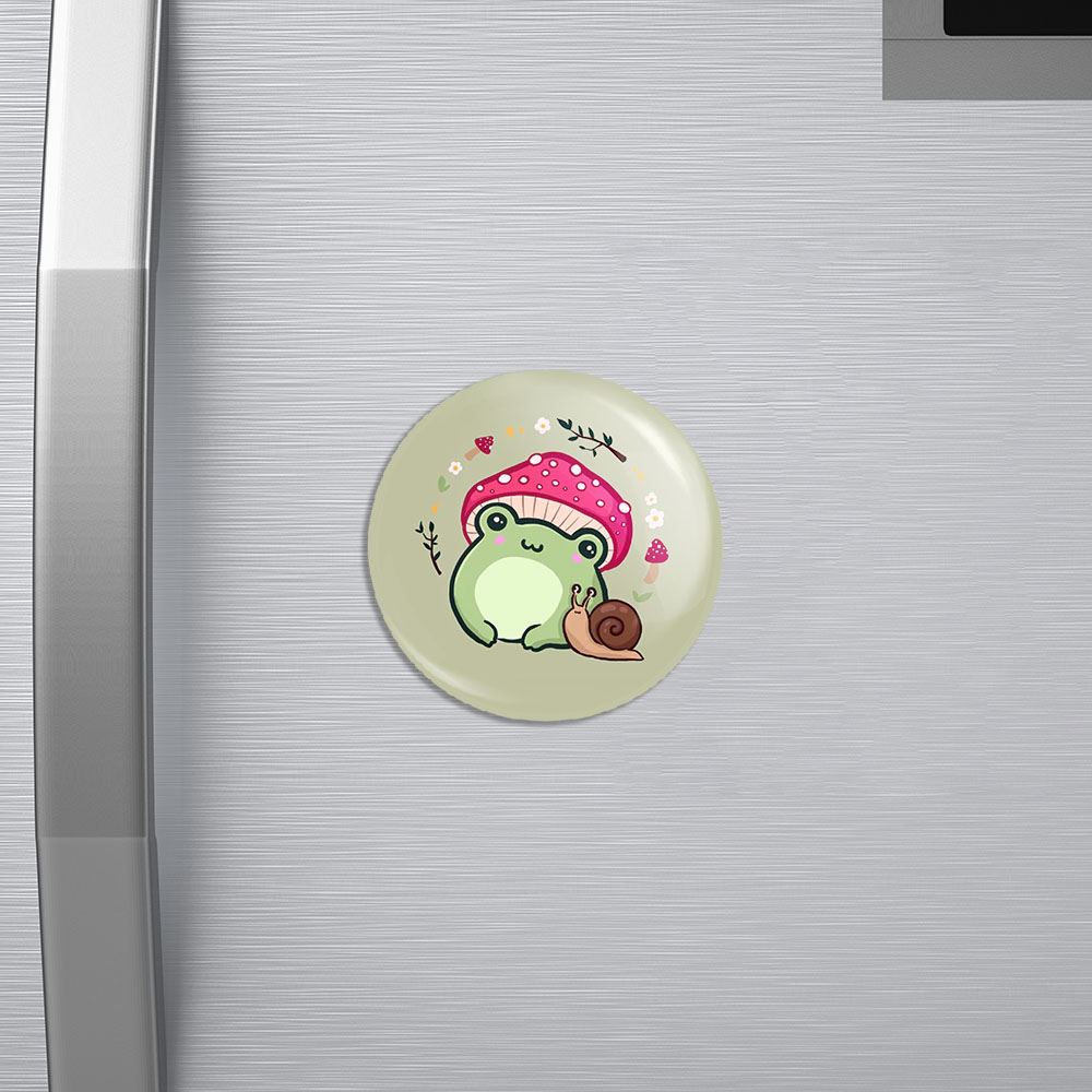 مگنت قورباغه خندالو با روکش سلفون مات مخملی ضدخش و قطعه پشتی فلزی تولید شده است که آهنربای اتمی بکار برده شده در محصول، بصورت مخفی تعبیه شده ودیده نمی شود. ضمن اینکه گیرایی بسیار بالایی داشته و به هیچ عنوان از روی یخچال نمی افتد.