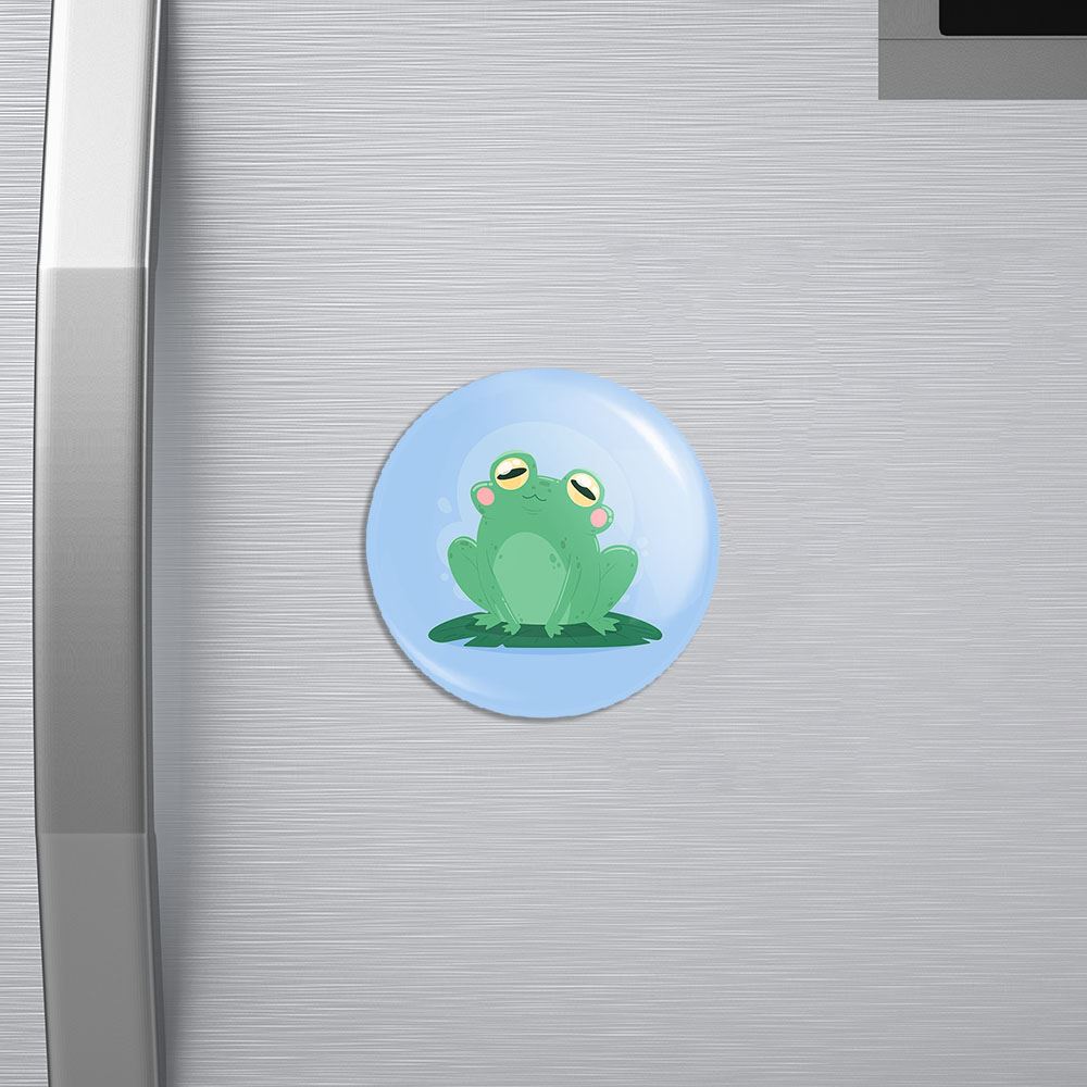 مگنت قورباغه خندالو با روکش سلفون مات مخملی ضدخش و قطعه پشتی فلزی تولید شده است که آهنربای اتمی بکار برده شده در محصول، بصورت مخفی تعبیه شده ودیده نمی شود. ضمن اینکه گیرایی بسیار بالایی داشته و به هیچ عنوان از روی یخچال نمی افتد.