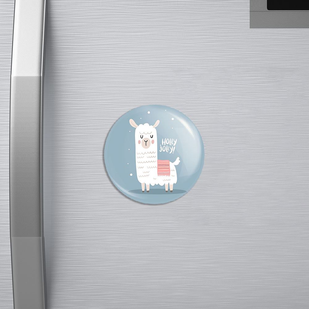 مگنت لاما خندالو با روکش سلفون مات مخملی ضدخش و قطعه پشتی فلزی تولید شده است که آهنربای اتمی بکار برده شده در محصول، بصورت مخفی تعبیه شده ودیده نمی شود. ضمن اینکه گیرایی بسیار بالایی داشته و به هیچ عنوان از روی یخچال نمی افتد.