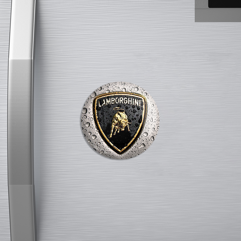 مگنت لامبورگینی Lamborghini خندالو با روکش سلفون مات مخملی ضدخش و قطعه پشتی فلزی تولید شده است که آهنربای اتمی بکار برده شده در محصول، بصورت مخفی تعبیه شده ودیده نمی شود. ضمن اینکه گیرایی بسیار بالایی داشته و به هیچ عنوان از روی یخچال نمی افتد.