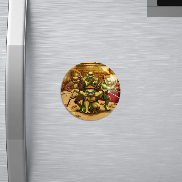 مگنت لاکپشت های نینجا خندالو با روکش سلفون مات مخملی ضدخش و قطعه پشتی فلزی تولید شده است که آهنربای اتمی بکار برده شده در محصول، بصورت مخفی تعبیه شده ودیده نمی شود. ضمن اینکه گیرایی بسیار بالایی داشته و به هیچ عنوان از روی یخچال نمی افتد.