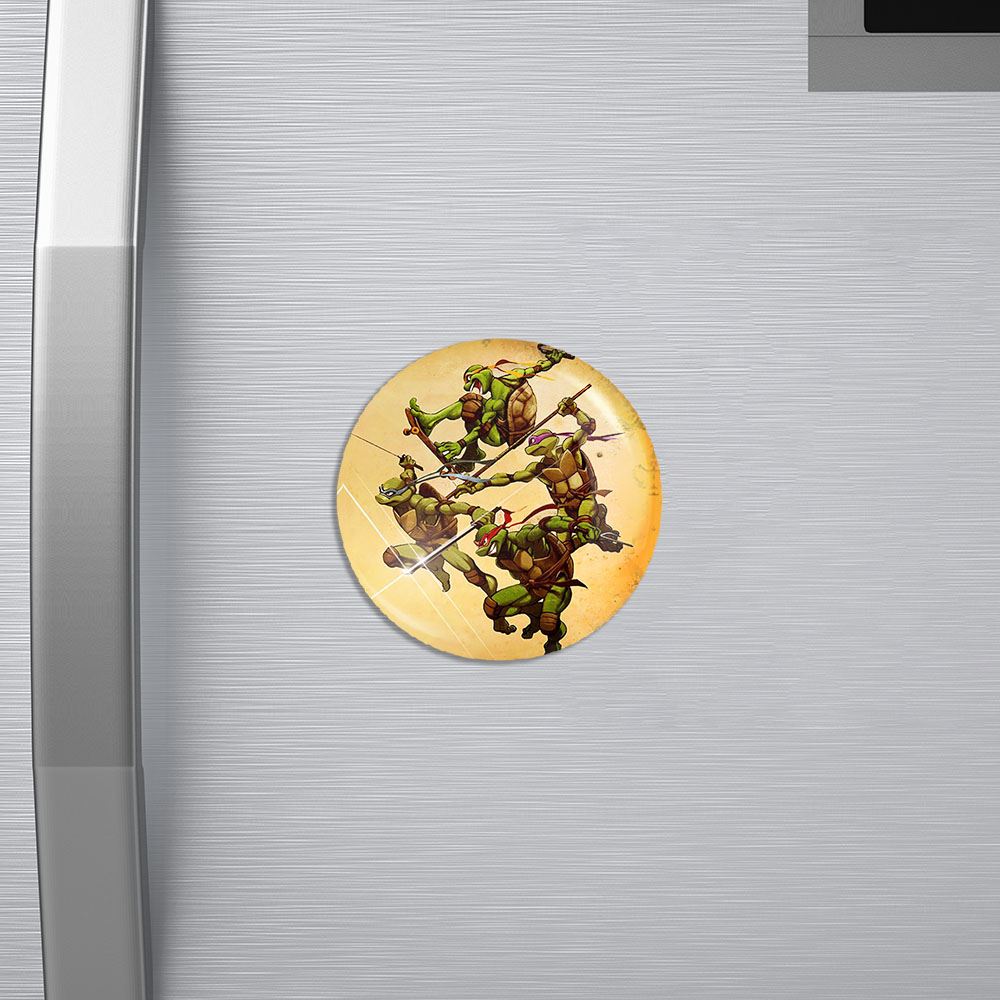 مگنت لاک پشت های نینجا خندالو با روکش سلفون مات مخملی ضدخش و قطعه پشتی فلزی تولید شده است که آهنربای اتمی بکار برده شده در محصول، بصورت مخفی تعبیه شده ودیده نمی شود. ضمن اینکه گیرایی بسیار بالایی داشته و به هیچ عنوان از روی یخچال نمی افتد.