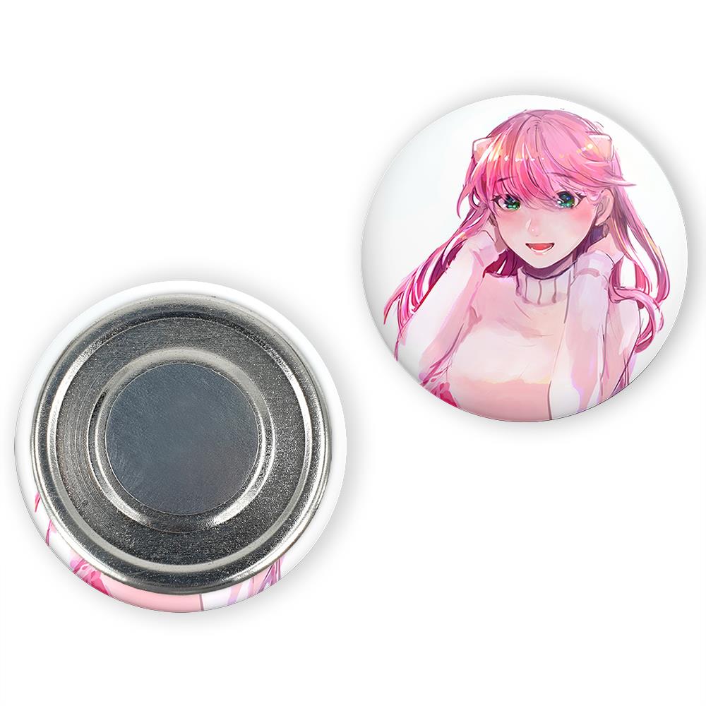 مگنت لوسی انیمه الفن لید خندالو با روکش سلفون مات مخملی ضدخش و قطعه پشتی فلزی تولید شده است که آهنربای اتمی بکار برده شده در محصول، بصورت مخفی تعبیه شده ودیده نمی شود. ضمن اینکه گیرایی بسیار بالایی داشته و به هیچ عنوان از روی یخچال نمی افتد.