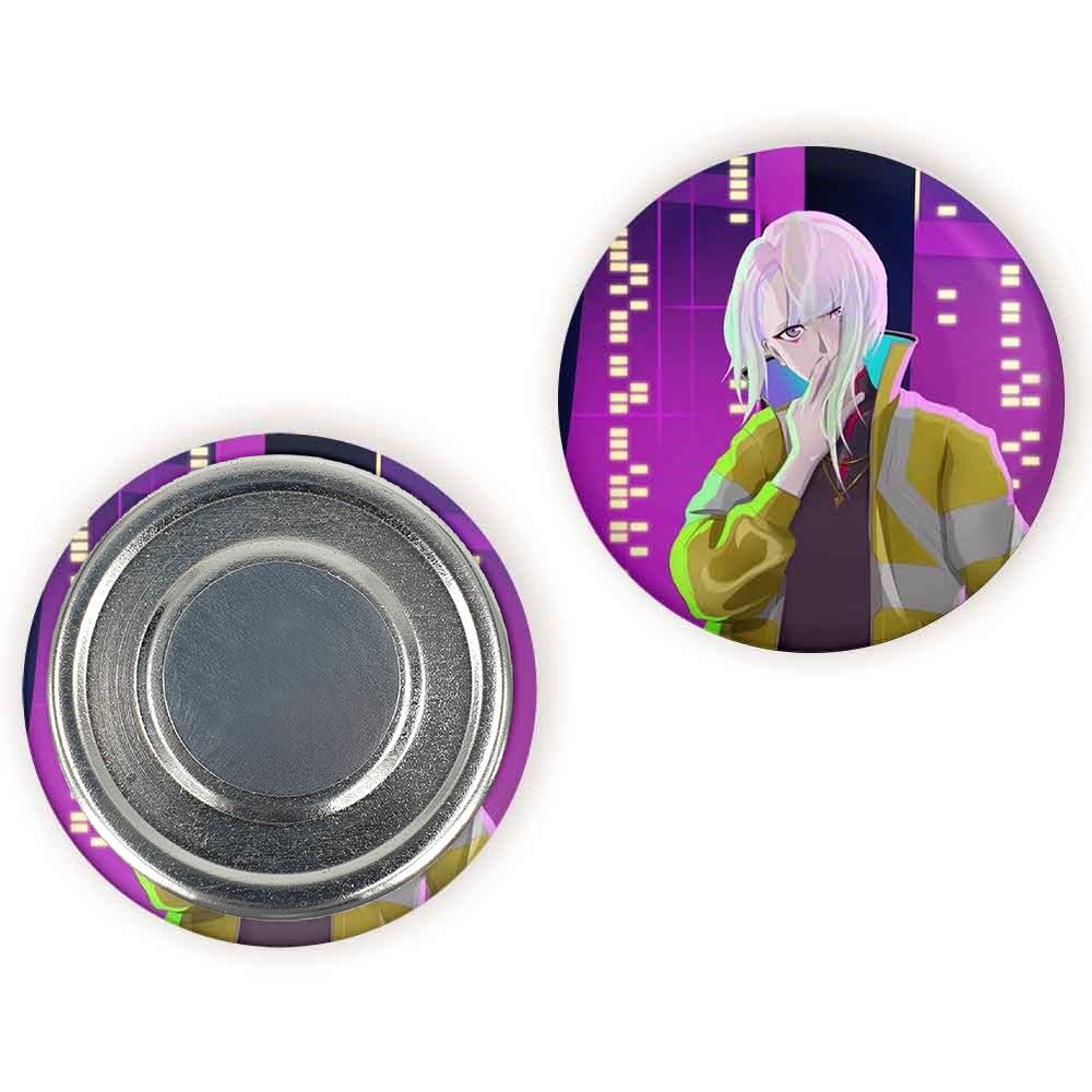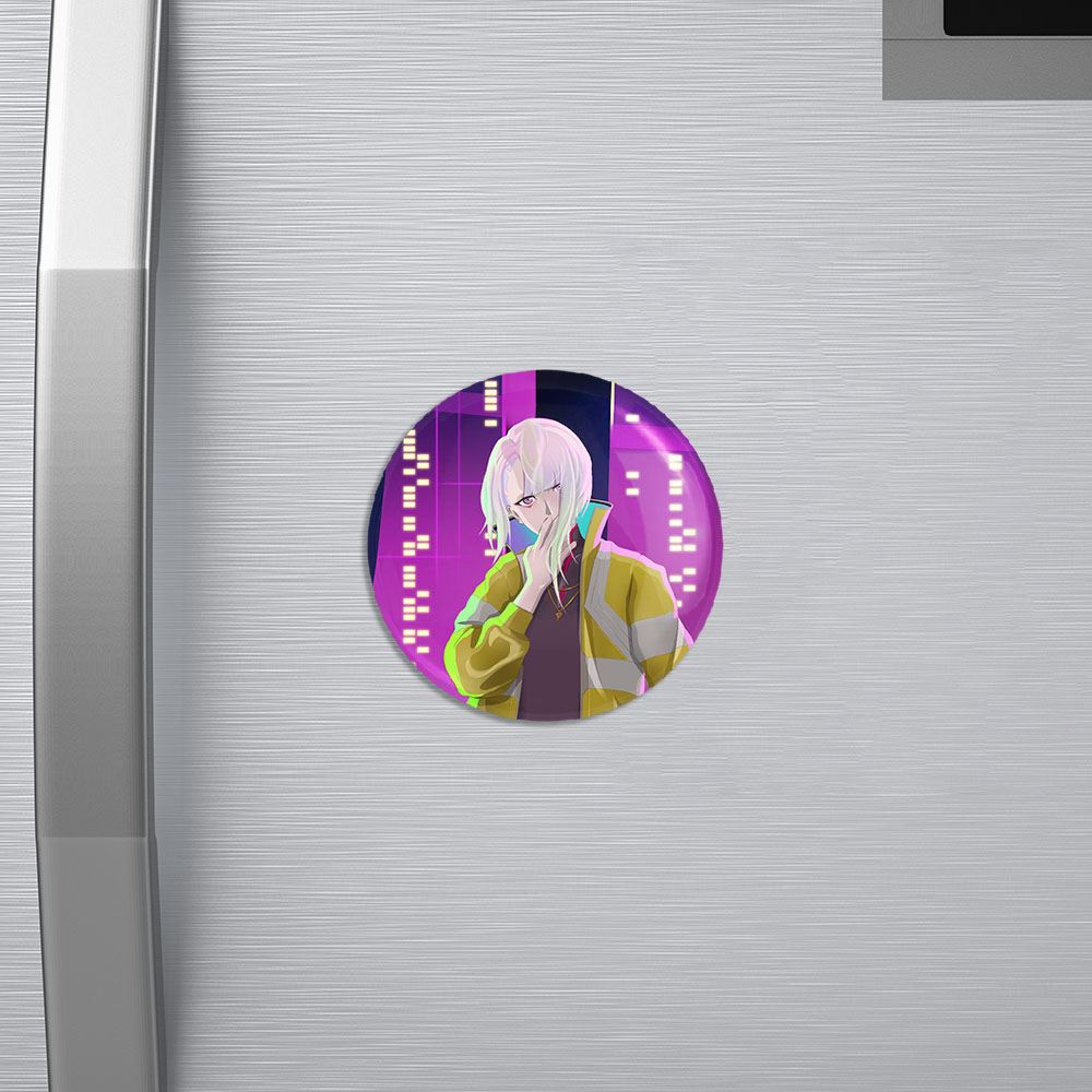 مگنت لوسی انیمه سایبرپانک خندالو با روکش سلفون مات مخملی ضدخش و قطعه پشتی فلزی تولید شده است که آهنربای اتمی بکار برده شده در محصول، بصورت مخفی تعبیه شده ودیده نمی شود. ضمن اینکه گیرایی بسیار بالایی داشته و به هیچ عنوان از روی یخچال نمی افتد.