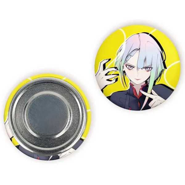 مگنت لوسی انیمه سایبرپانک خندالو با روکش سلفون مات مخملی ضدخش و قطعه پشتی فلزی تولید شده است که آهنربای اتمی بکار برده شده در محصول، بصورت مخفی تعبیه شده ودیده نمی شود. ضمن اینکه گیرایی بسیار بالایی داشته و به هیچ عنوان از روی یخچال نمی افتد.