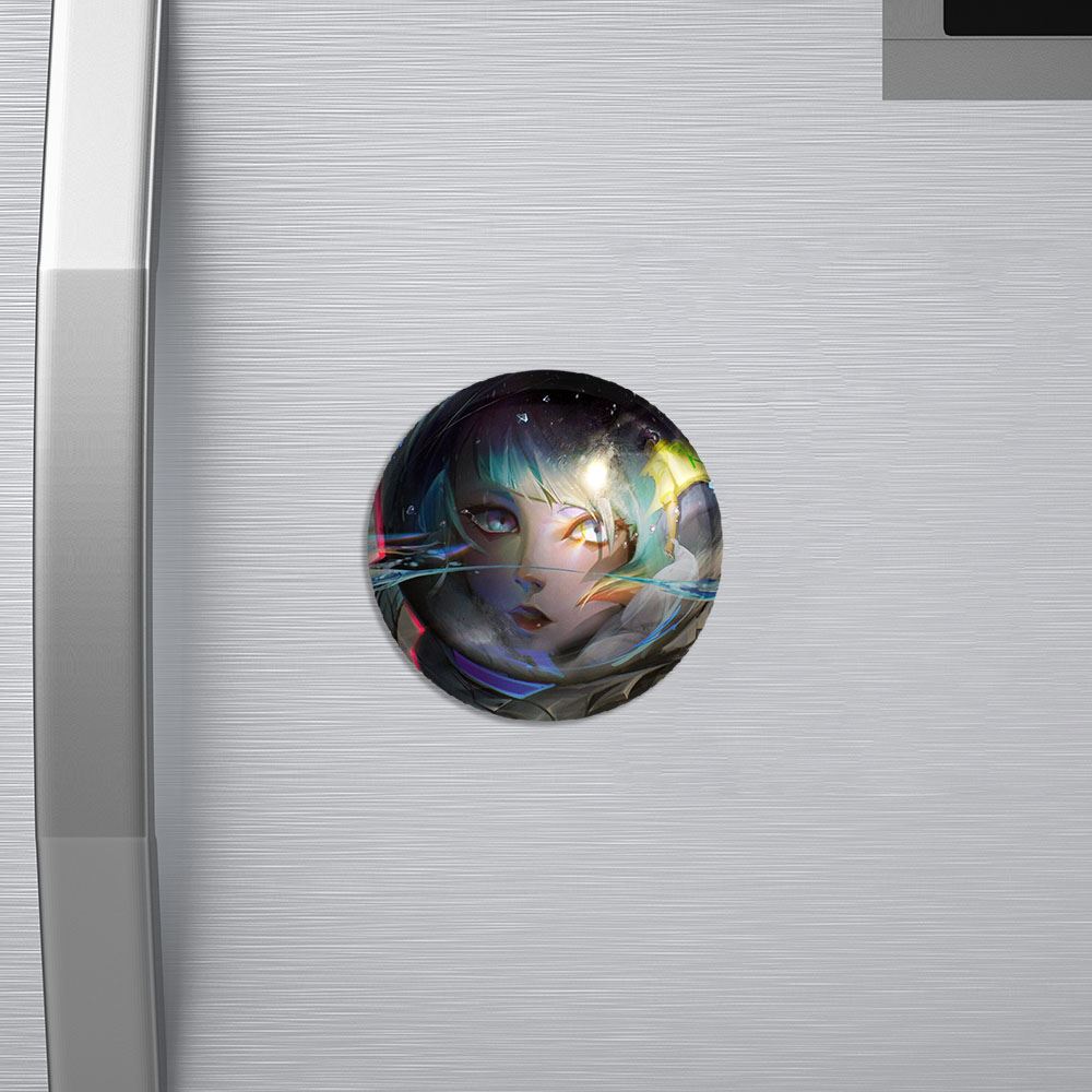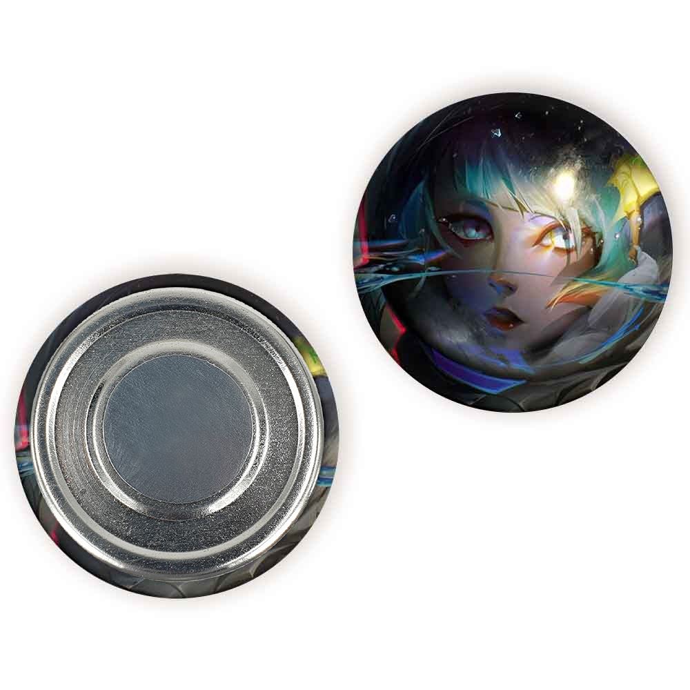 مگنت لوسی انیمه سایبرپانک خندالو با روکش سلفون مات مخملی ضدخش و قطعه پشتی فلزی تولید شده است که آهنربای اتمی بکار برده شده در محصول، بصورت مخفی تعبیه شده ودیده نمی شود. ضمن اینکه گیرایی بسیار بالایی داشته و به هیچ عنوان از روی یخچال نمی افتد.