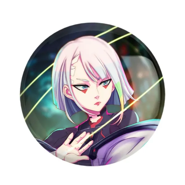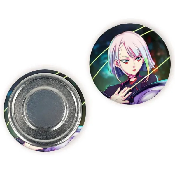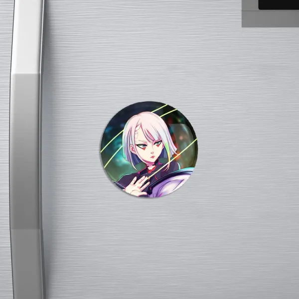مگنت لوسی انیمه سایبر پانک Cyberpunk خندالو با روکش سلفون مات مخملی ضدخش و قطعه پشتی فلزی تولید شده است که آهنربای اتمی بکار برده شده در محصول، بصورت مخفی تعبیه شده ودیده نمی شود. ضمن اینکه گیرایی بسیار بالایی داشته و به هیچ عنوان از روی یخچال نمی افتد.