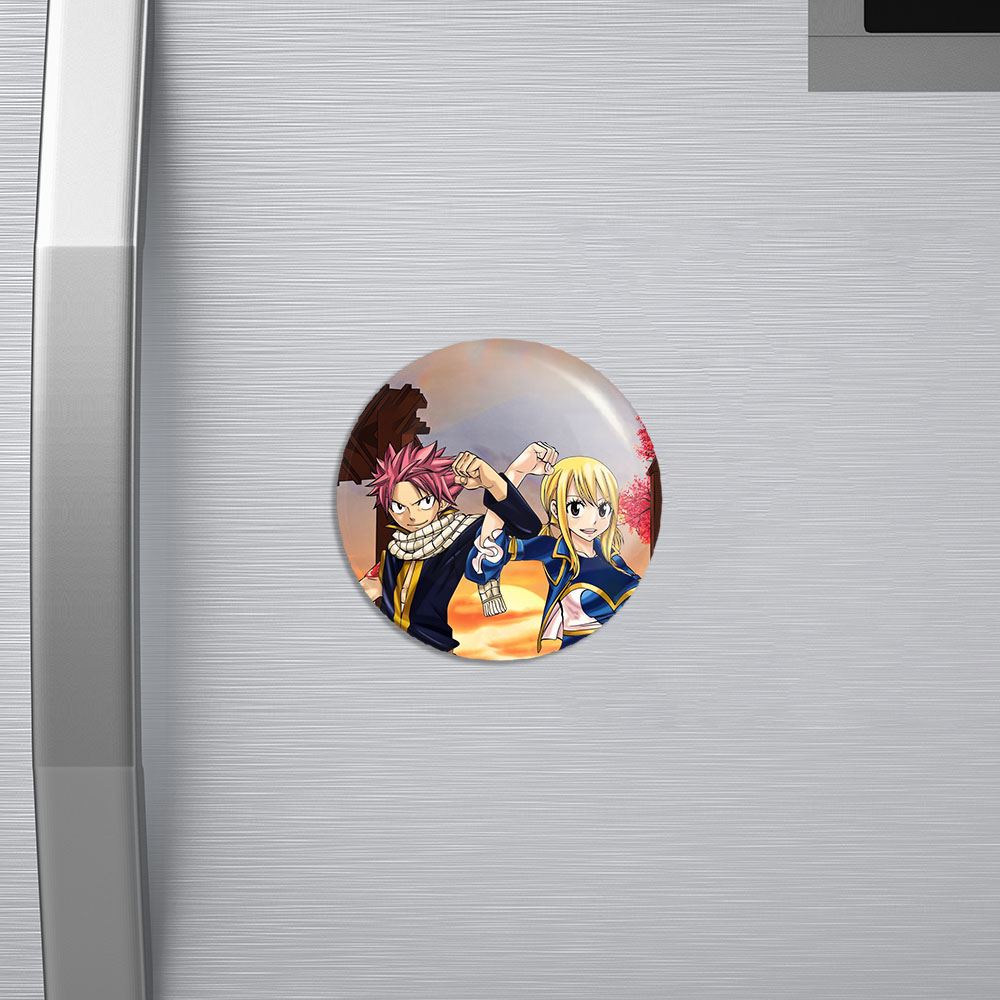 مگنت لوسی و ناتسو انیمه فری تیل Fairy Tail خندالو با روکش سلفون مات مخملی ضدخش و قطعه پشتی فلزی تولید شده است که آهنربای اتمی بکار برده شده در محصول، بصورت مخفی تعبیه شده ودیده نمی شود. ضمن اینکه گیرایی بسیار بالایی داشته و به هیچ عنوان از روی یخچال نمی افتد.