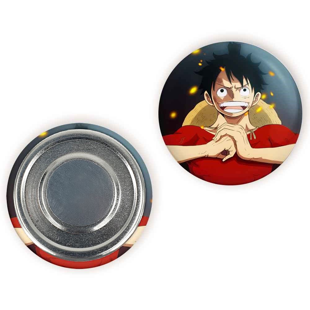 مگنت لوفی انیمه وان پیس One Piece خندالو با روکش سلفون مات مخملی ضدخش و قطعه پشتی فلزی تولید شده است که آهنربای اتمی بکار برده شده در محصول، بصورت مخفی تعبیه شده ودیده نمی شود. ضمن اینکه گیرایی بسیار بالایی داشته و به هیچ عنوان از روی یخچال نمی افتد.