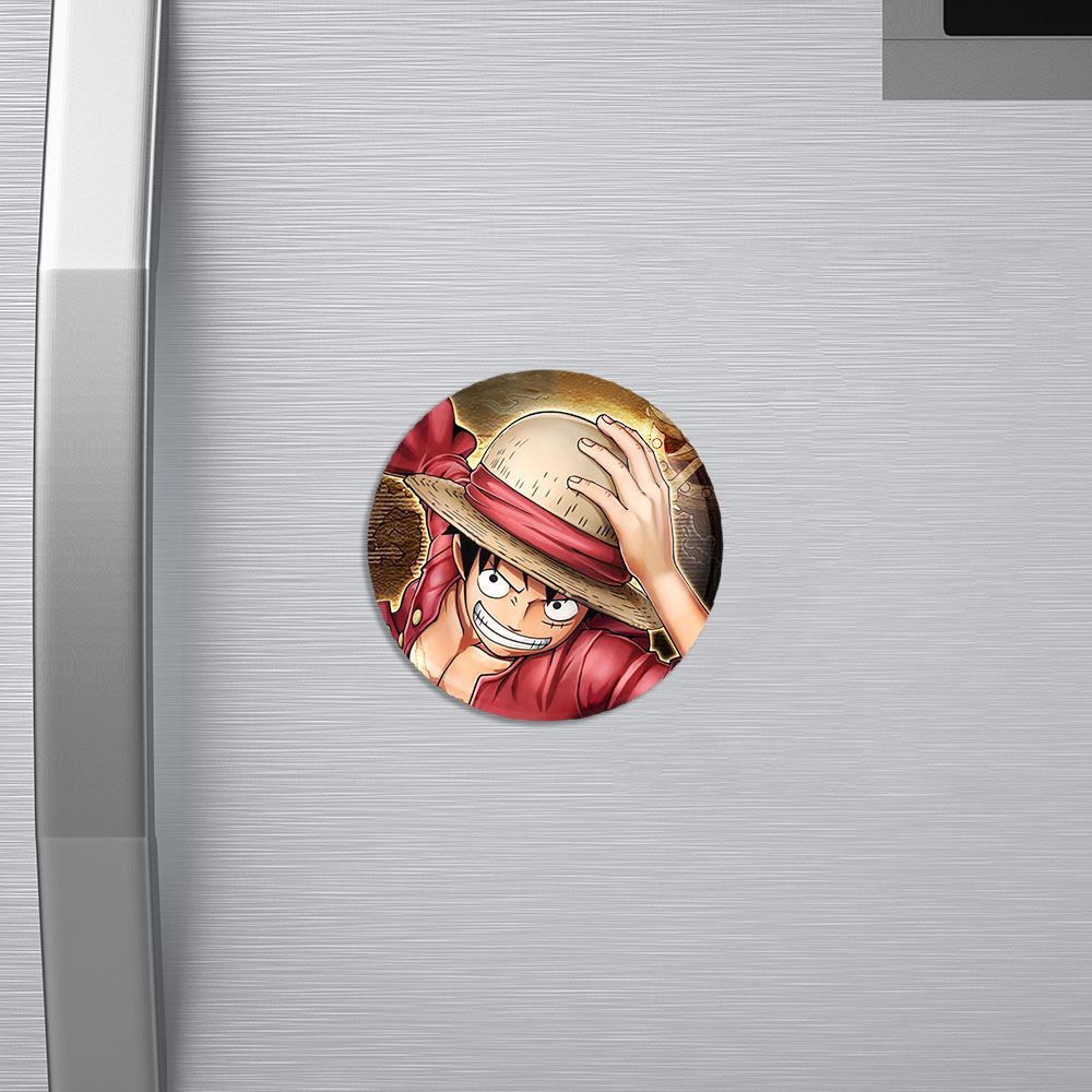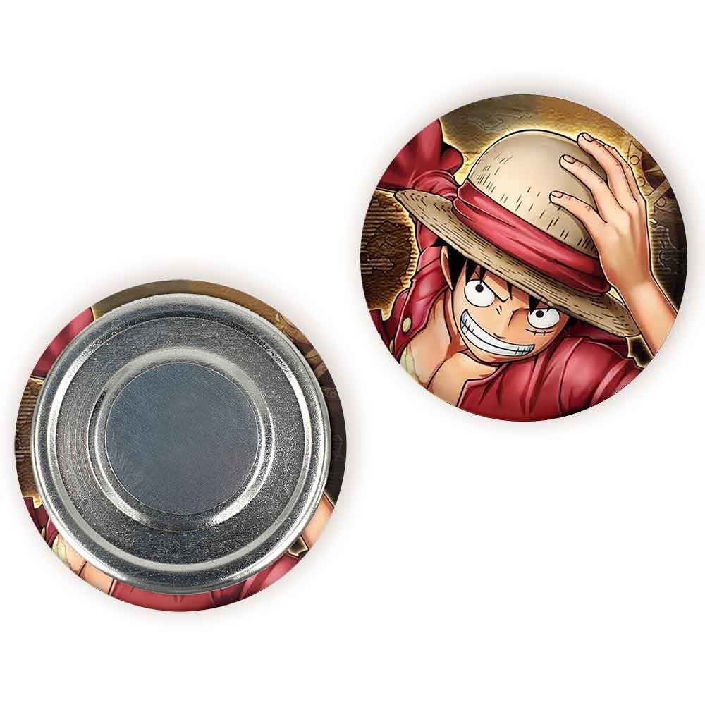 مگنت لوفی انیمه وان پیس One Piece خندالو با روکش سلفون مات مخملی ضدخش و قطعه پشتی فلزی تولید شده است که آهنربای اتمی بکار برده شده در محصول، بصورت مخفی تعبیه شده ودیده نمی شود. ضمن اینکه گیرایی بسیار بالایی داشته و به هیچ عنوان از روی یخچال نمی افتد.