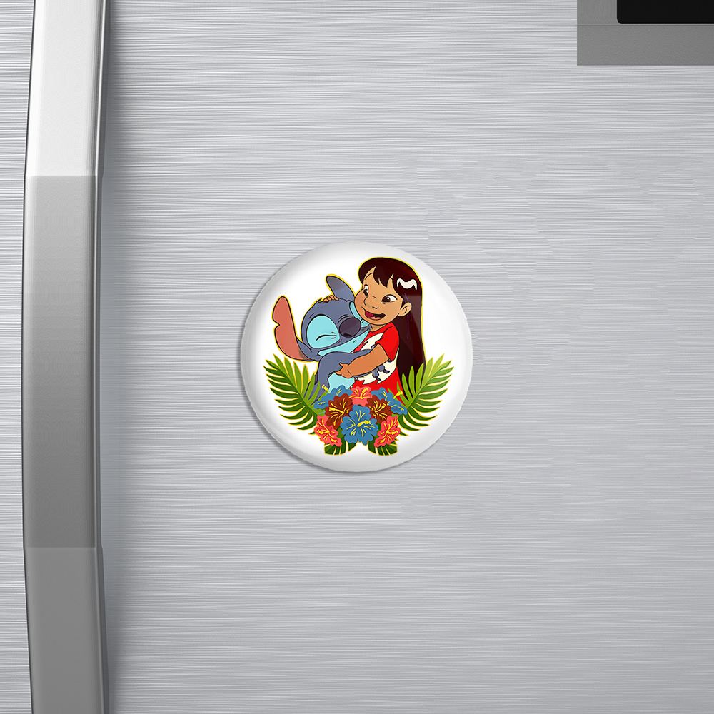 مگنت لیلو و استیچ خندالو با روکش سلفون مات مخملی ضدخش و قطعه پشتی فلزی تولید شده است که آهنربای اتمی بکار برده شده در محصول، بصورت مخفی تعبیه شده ودیده نمی شود. ضمن اینکه گیرایی بسیار بالایی داشته و به هیچ عنوان از روی یخچال نمی افتد.