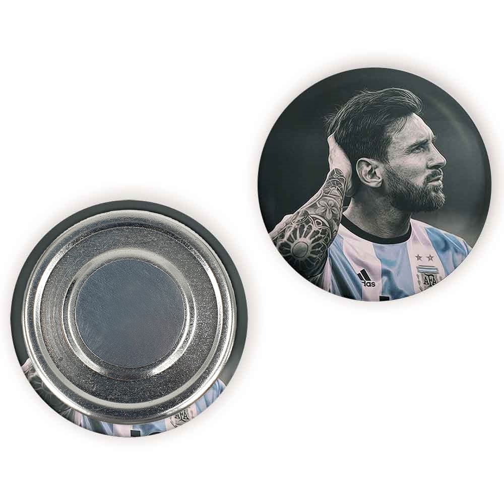 مگنت لیونل مسی خندالو با روکش سلفون مات مخملی ضدخش و قطعه پشتی فلزی تولید شده است که آهنربای اتمی بکار برده شده در محصول، بصورت مخفی تعبیه شده ودیده نمی شود. ضمن اینکه گیرایی بسیار بالایی داشته و به هیچ عنوان از روی یخچال نمی افتد.