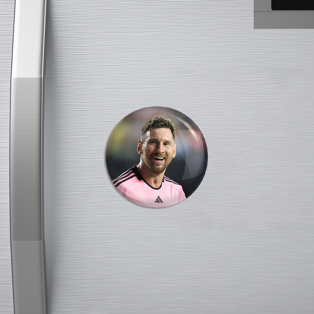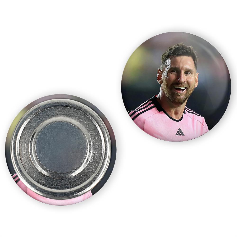 مگنت لیونل مسی خندالو با روکش سلفون مات مخملی ضدخش و قطعه پشتی فلزی تولید شده است که آهنربای اتمی بکار برده شده در محصول، بصورت مخفی تعبیه شده ودیده نمی شود. ضمن اینکه گیرایی بسیار بالایی داشته و به هیچ عنوان از روی یخچال نمی افتد.