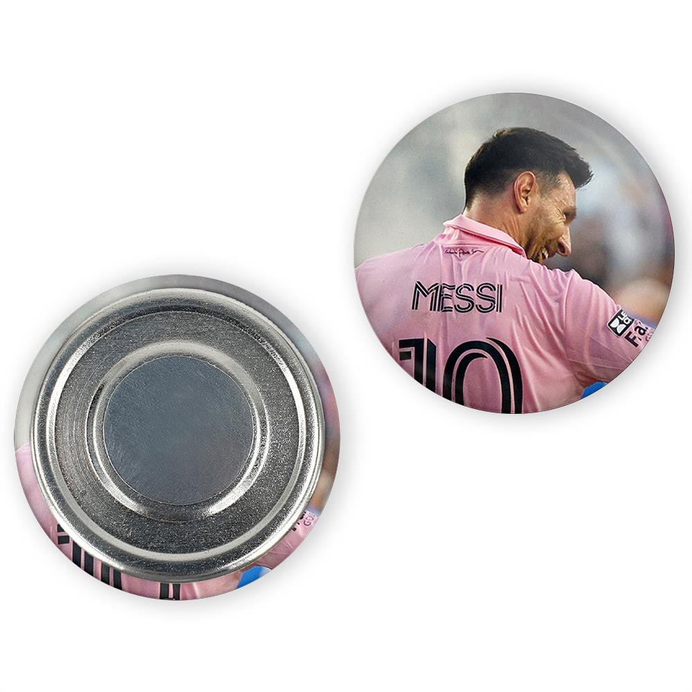 مگنت لیونل مسی خندالو با روکش سلفون مات مخملی ضدخش و قطعه پشتی فلزی تولید شده است که آهنربای اتمی بکار برده شده در محصول، بصورت مخفی تعبیه شده ودیده نمی شود. ضمن اینکه گیرایی بسیار بالایی داشته و به هیچ عنوان از روی یخچال نمی افتد.