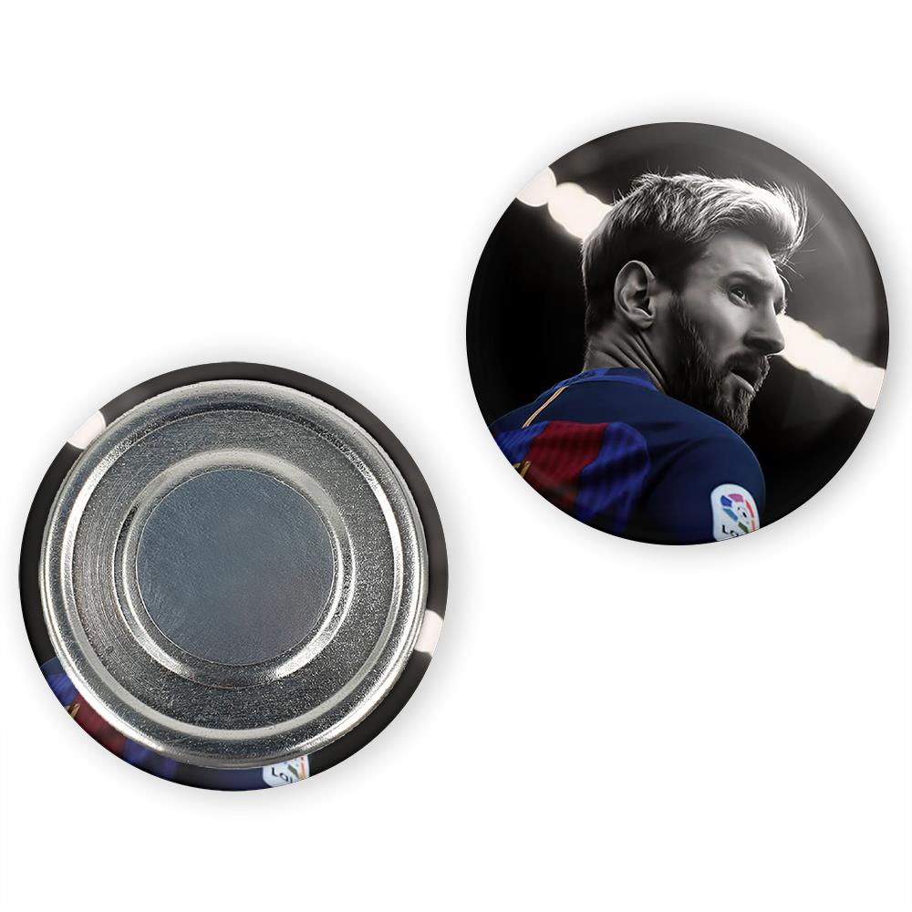 مگنت لیونل مسی خندالو با روکش سلفون مات مخملی ضدخش و قطعه پشتی فلزی تولید شده است که آهنربای اتمی بکار برده شده در محصول، بصورت مخفی تعبیه شده ودیده نمی شود. ضمن اینکه گیرایی بسیار بالایی داشته و به هیچ عنوان از روی یخچال نمی افتد.