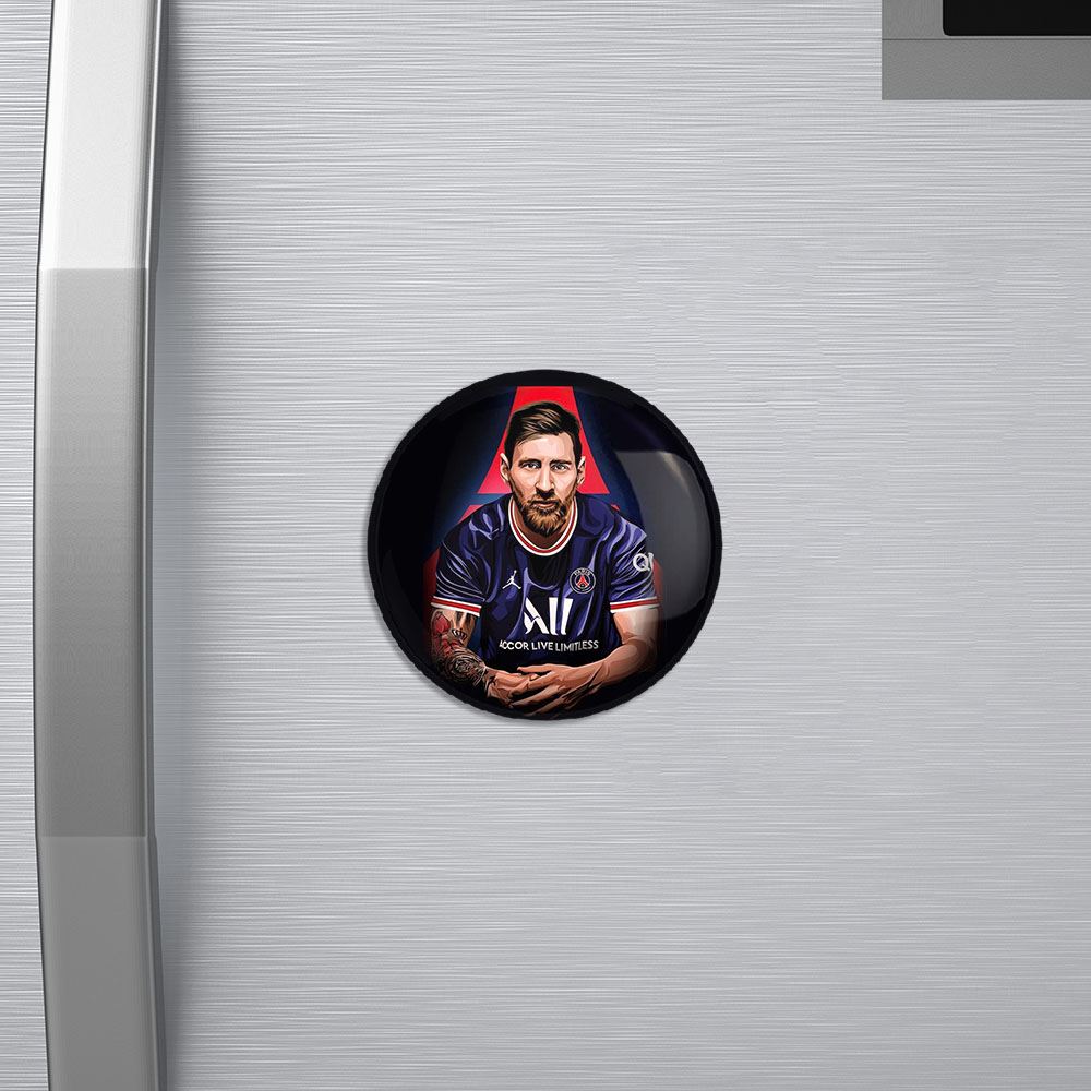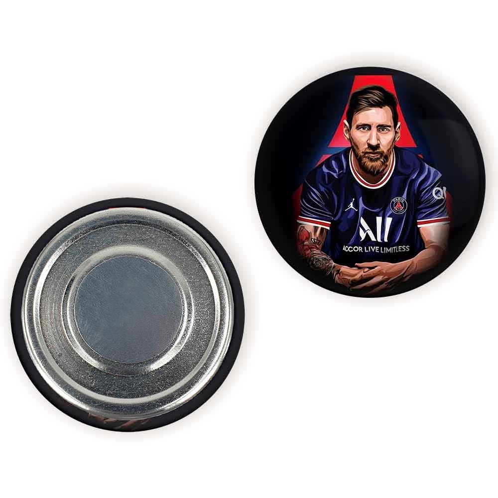 مگنت لیونل مسی خندالو با روکش سلفون مات مخملی ضدخش و قطعه پشتی فلزی تولید شده است که آهنربای اتمی بکار برده شده در محصول، بصورت مخفی تعبیه شده ودیده نمی شود. ضمن اینکه گیرایی بسیار بالایی داشته و به هیچ عنوان از روی یخچال نمی افتد.