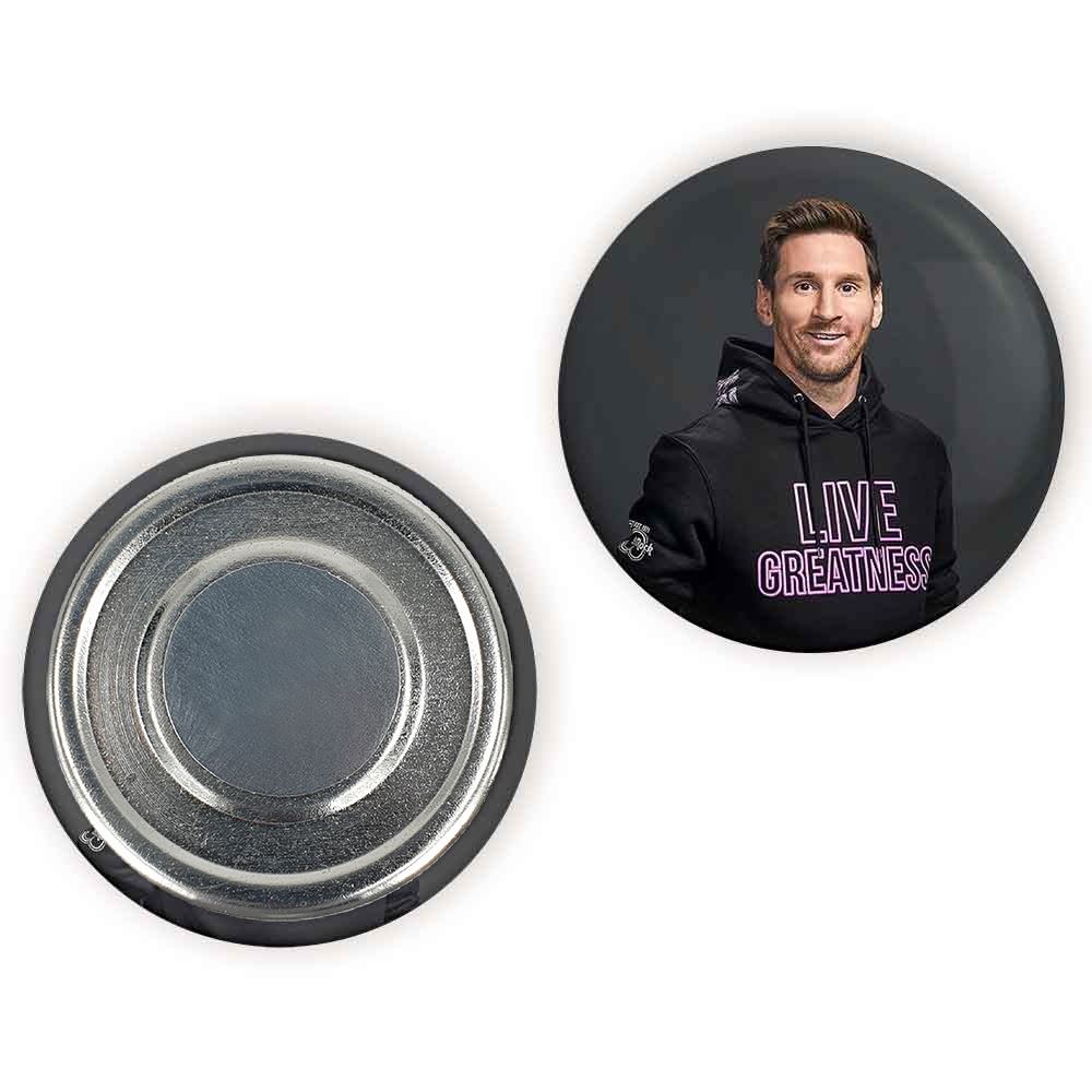 مگنت لیونل مسی خندالو با روکش سلفون مات مخملی ضدخش و قطعه پشتی فلزی تولید شده است که آهنربای اتمی بکار برده شده در محصول، بصورت مخفی تعبیه شده ودیده نمی شود. ضمن اینکه گیرایی بسیار بالایی داشته و به هیچ عنوان از روی یخچال نمی افتد.