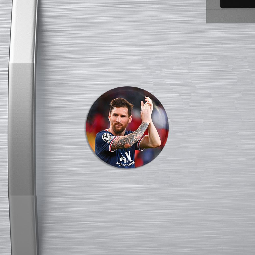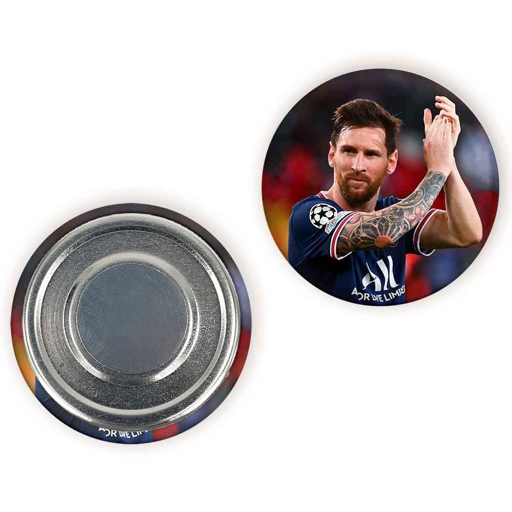 مگنت لیونل مسی خندالو با روکش سلفون مات مخملی ضدخش و قطعه پشتی فلزی تولید شده است که آهنربای اتمی بکار برده شده در محصول، بصورت مخفی تعبیه شده ودیده نمی شود. ضمن اینکه گیرایی بسیار بالایی داشته و به هیچ عنوان از روی یخچال نمی افتد.