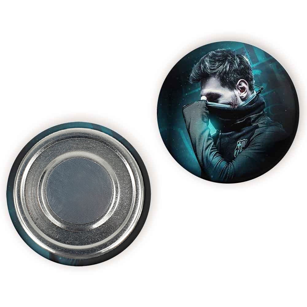 مگنت لیونل مسی خندالو با روکش سلفون مات مخملی ضدخش و قطعه پشتی فلزی تولید شده است که آهنربای اتمی بکار برده شده در محصول، بصورت مخفی تعبیه شده ودیده نمی شود. ضمن اینکه گیرایی بسیار بالایی داشته و به هیچ عنوان از روی یخچال نمی افتد.