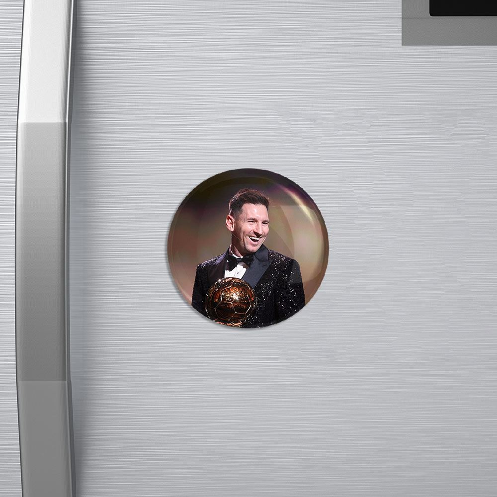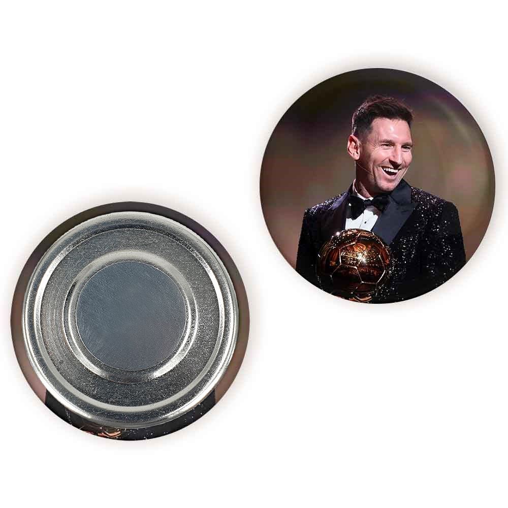 مگنت لیونل مسی خندالو با روکش سلفون مات مخملی ضدخش و قطعه پشتی فلزی تولید شده است که آهنربای اتمی بکار برده شده در محصول، بصورت مخفی تعبیه شده ودیده نمی شود. ضمن اینکه گیرایی بسیار بالایی داشته و به هیچ عنوان از روی یخچال نمی افتد.