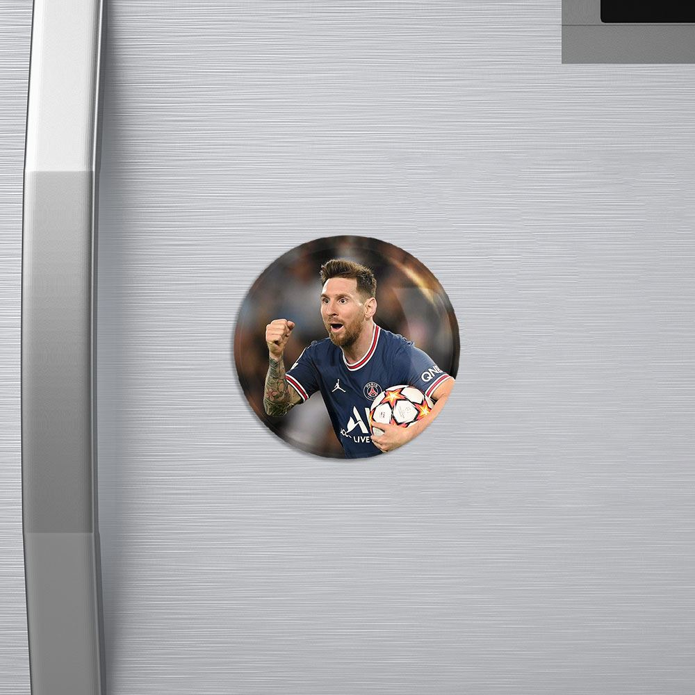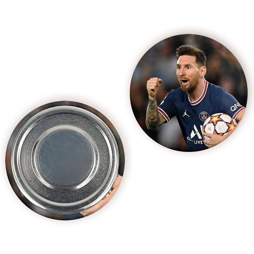 مگنت لیونل مسی خندالو با روکش سلفون مات مخملی ضدخش و قطعه پشتی فلزی تولید شده است که آهنربای اتمی بکار برده شده در محصول، بصورت مخفی تعبیه شده ودیده نمی شود. ضمن اینکه گیرایی بسیار بالایی داشته و به هیچ عنوان از روی یخچال نمی افتد.