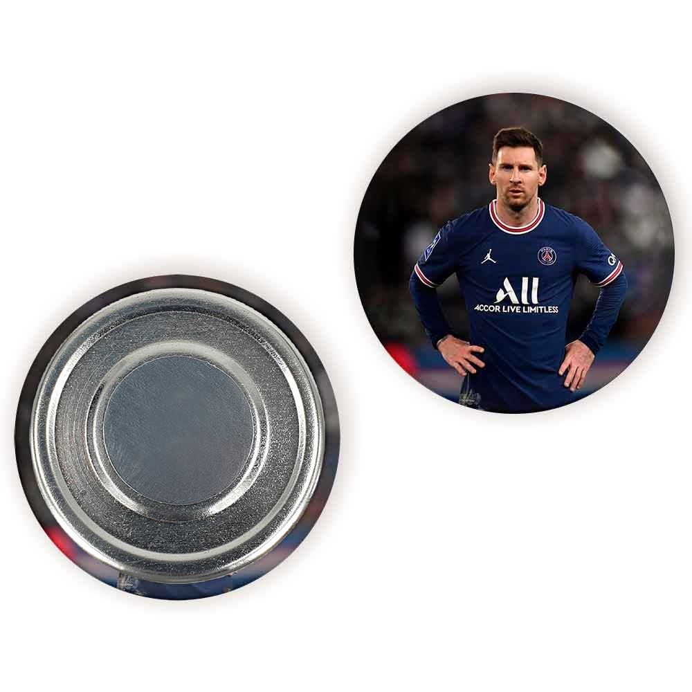 مگنت لیونل مسی خندالو با روکش سلفون مات مخملی ضدخش و قطعه پشتی فلزی تولید شده است که آهنربای اتمی بکار برده شده در محصول، بصورت مخفی تعبیه شده ودیده نمی شود. ضمن اینکه گیرایی بسیار بالایی داشته و به هیچ عنوان از روی یخچال نمی افتد.
