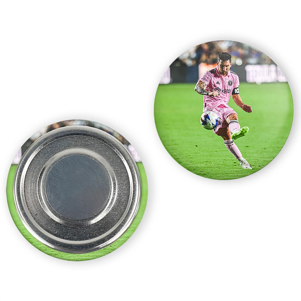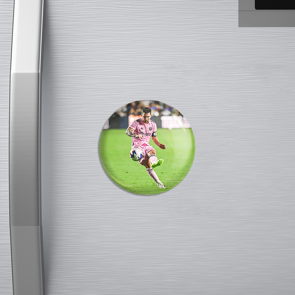 مگنت لیونل مسی خندالو با روکش سلفون مات مخملی ضدخش و قطعه پشتی فلزی تولید شده است که آهنربای اتمی بکار برده شده در محصول، بصورت مخفی تعبیه شده ودیده نمی شود. ضمن اینکه گیرایی بسیار بالایی داشته و به هیچ عنوان از روی یخچال نمی افتد.